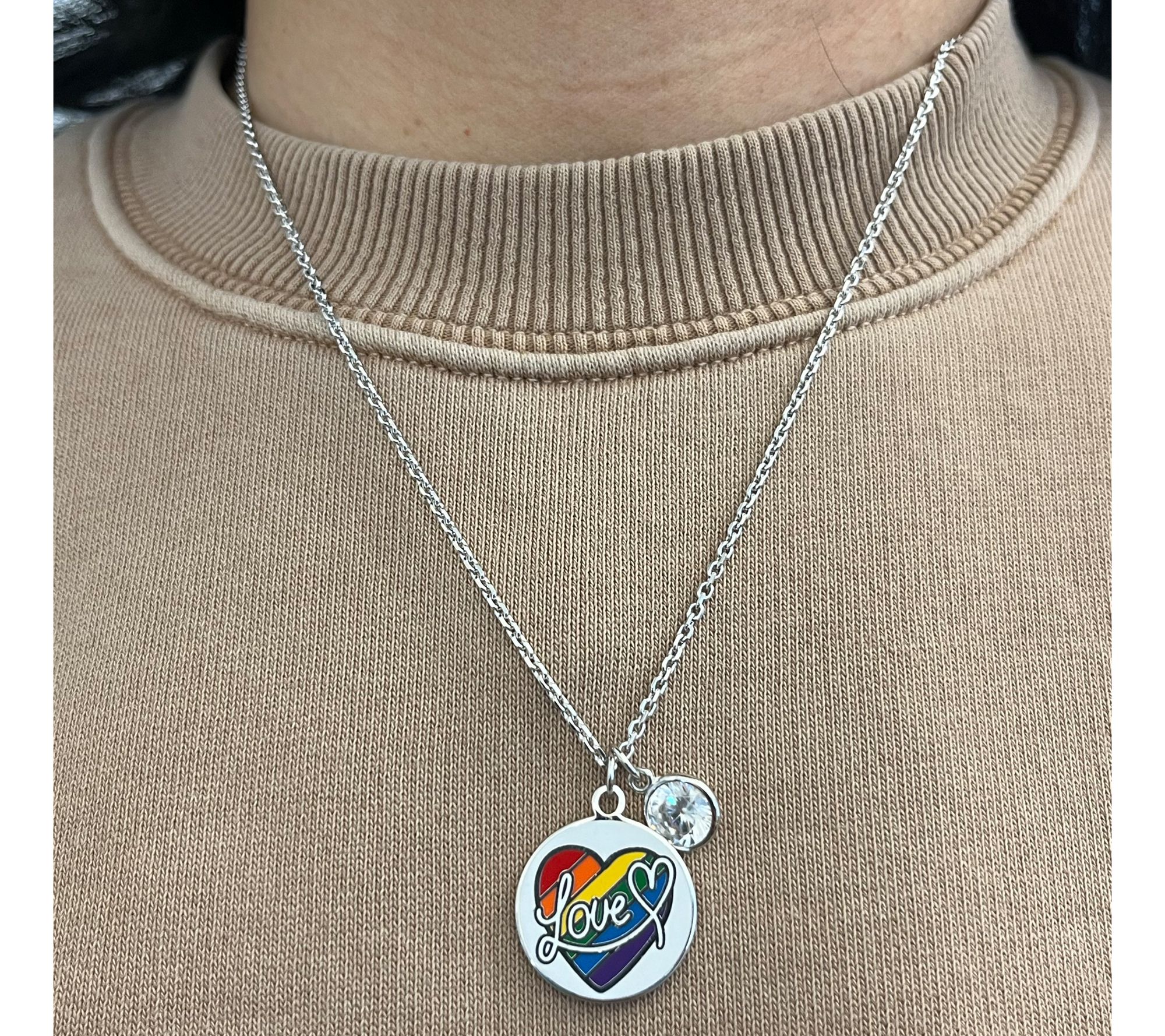 Diamonique "Love" Enamel Pendant w/ Chain, Sterling Silver
