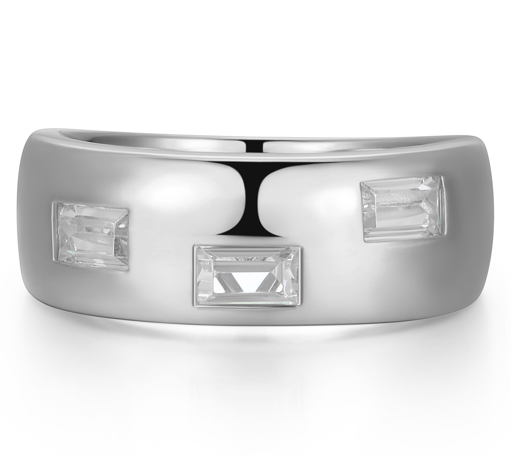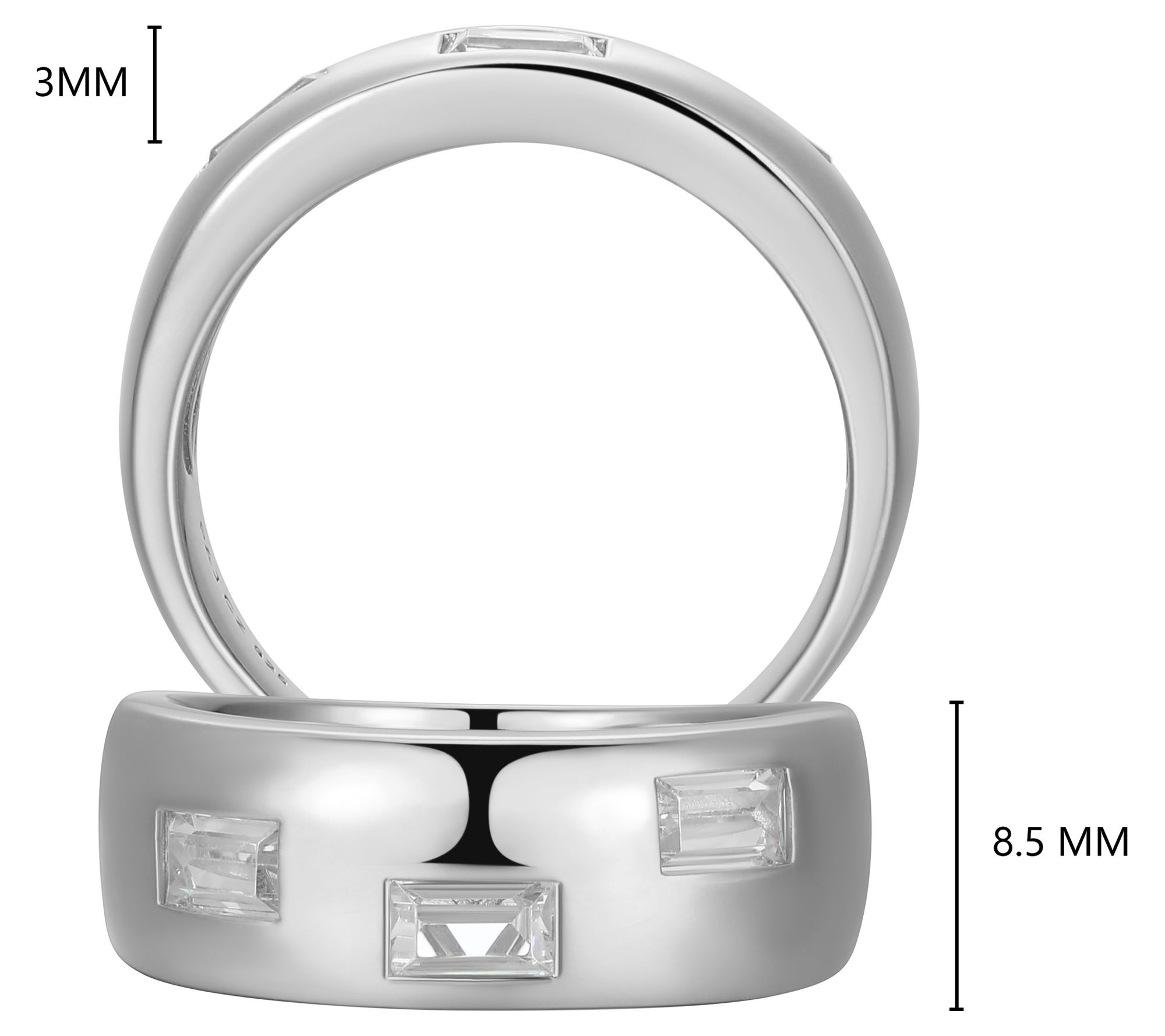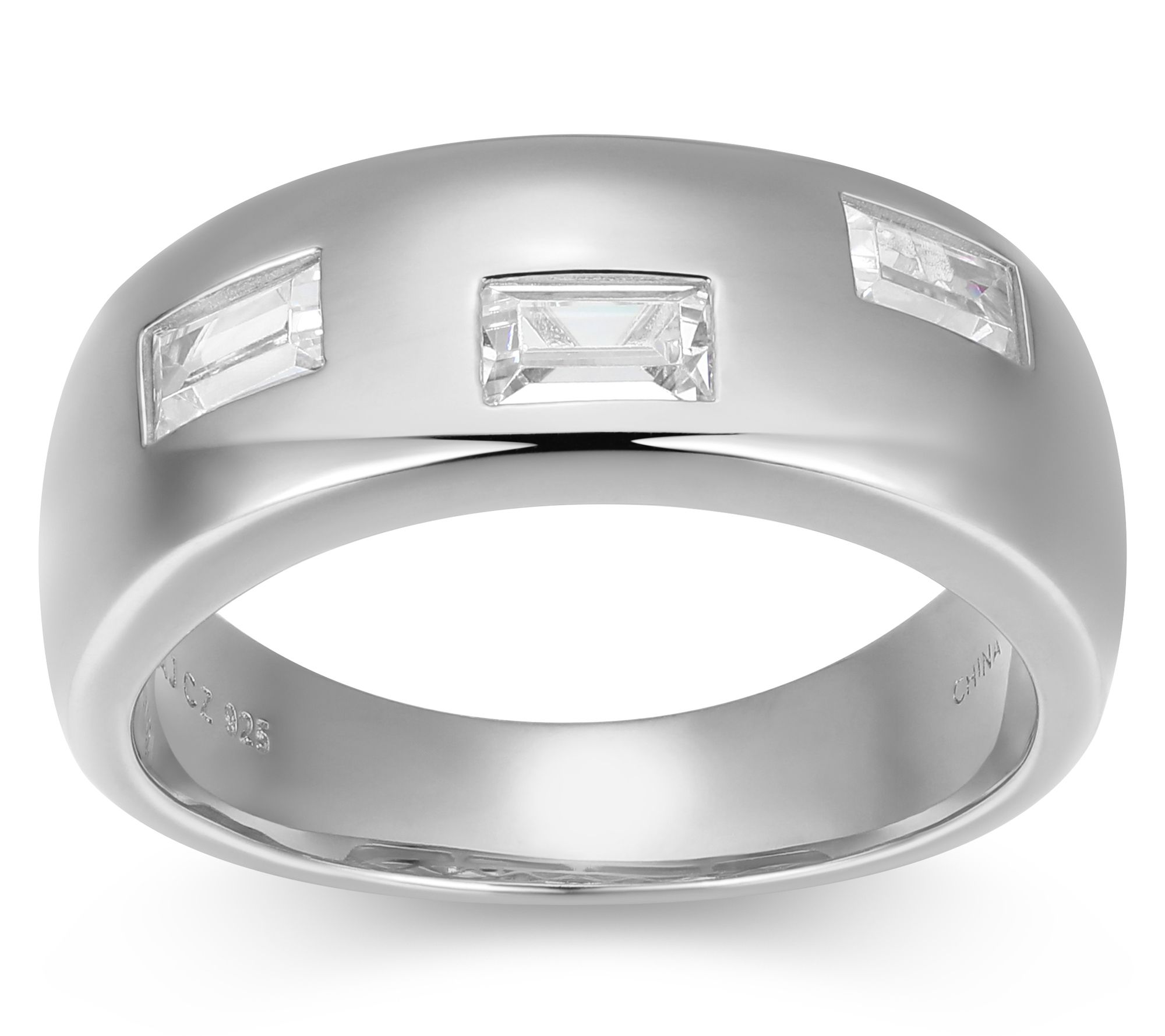 - Band style; bezel-set, square step-cut Diamonique simulated diamonds