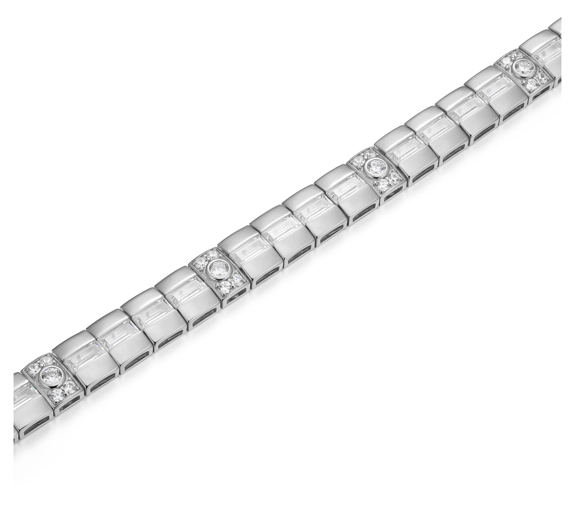 Square link design with bezel-, prong-, and channel-set Diamonique simulated diamonds