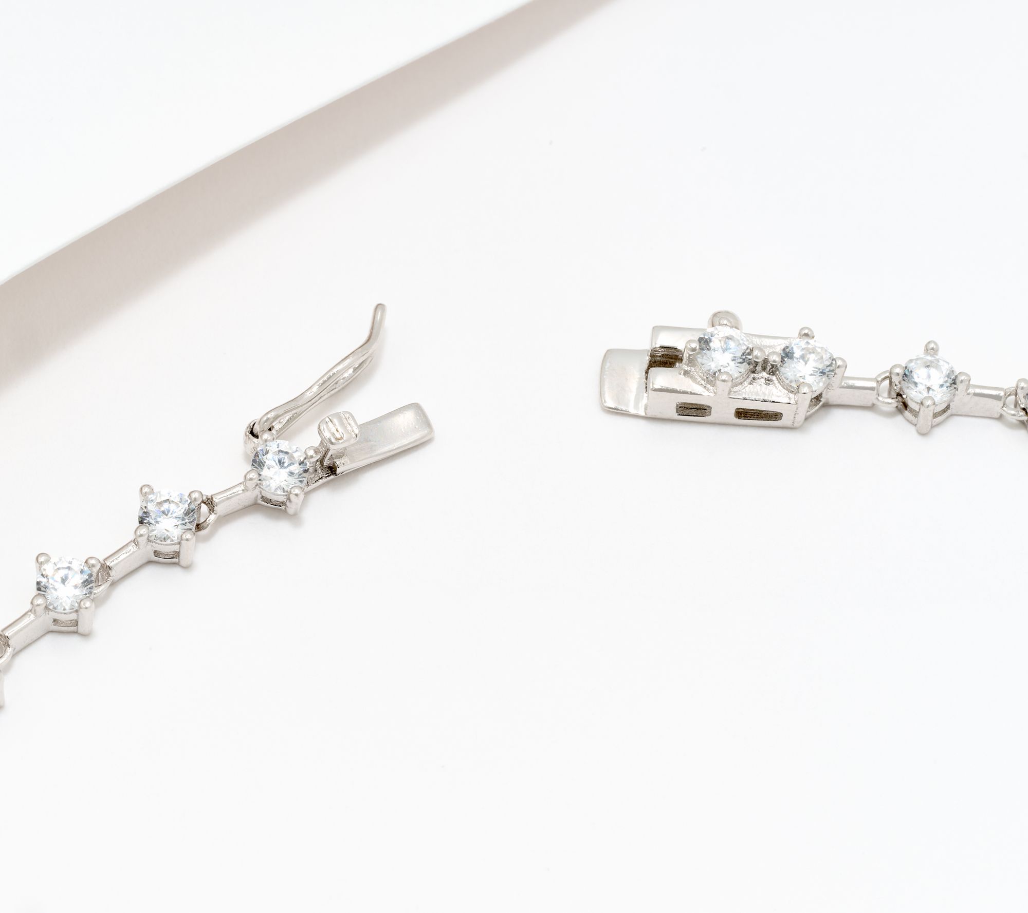 Indulge in the timeless elegance of this exquisite mixed cut tennis necklace. Featuring a sparkling arrangement of Diamonique simulated diamonds, it's perfect for adding a touch of glamour to any outfit.