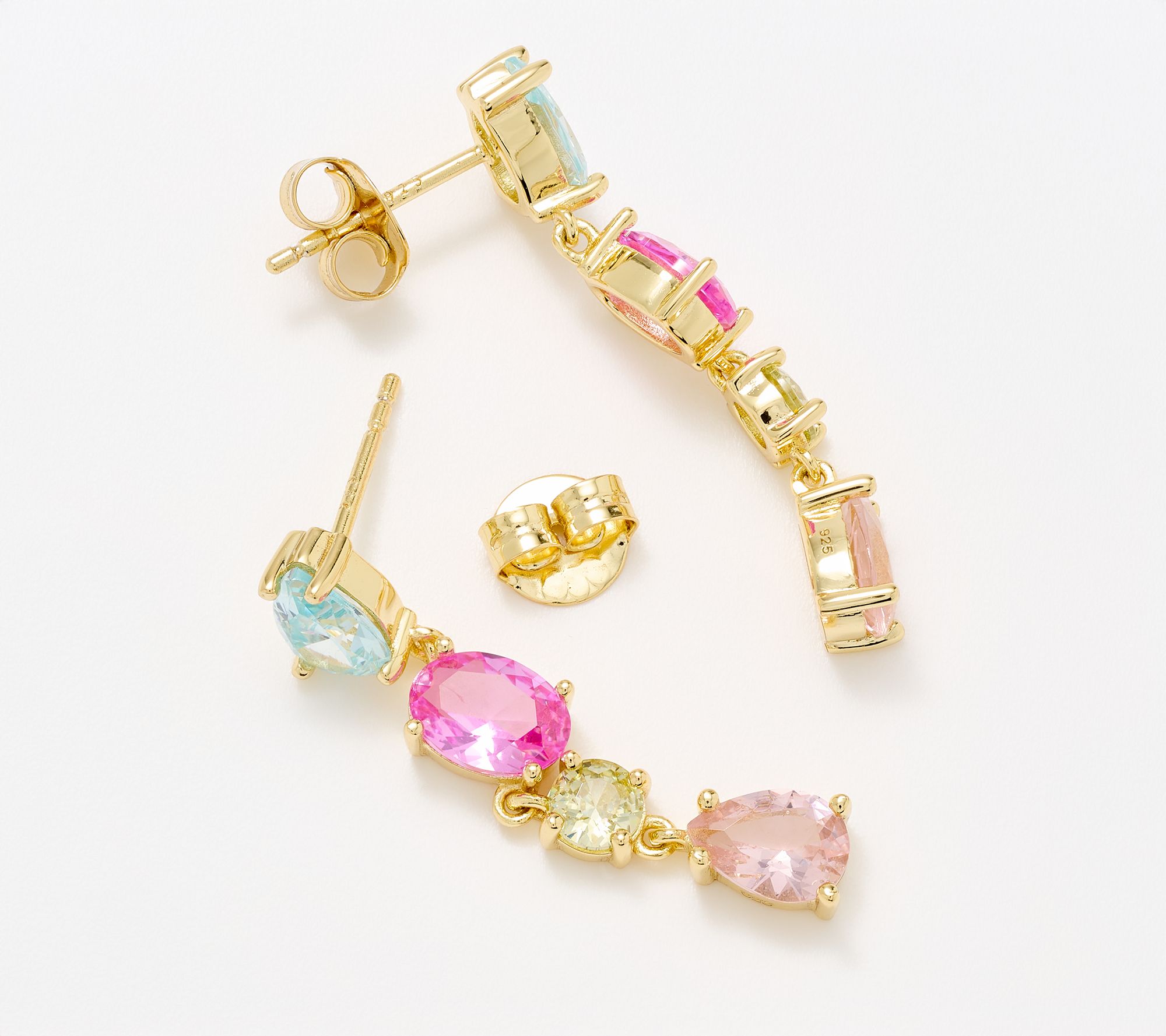 • Dangle design; round, oval-cut, and pear-cut multicolored Diamonique simulated diamonds