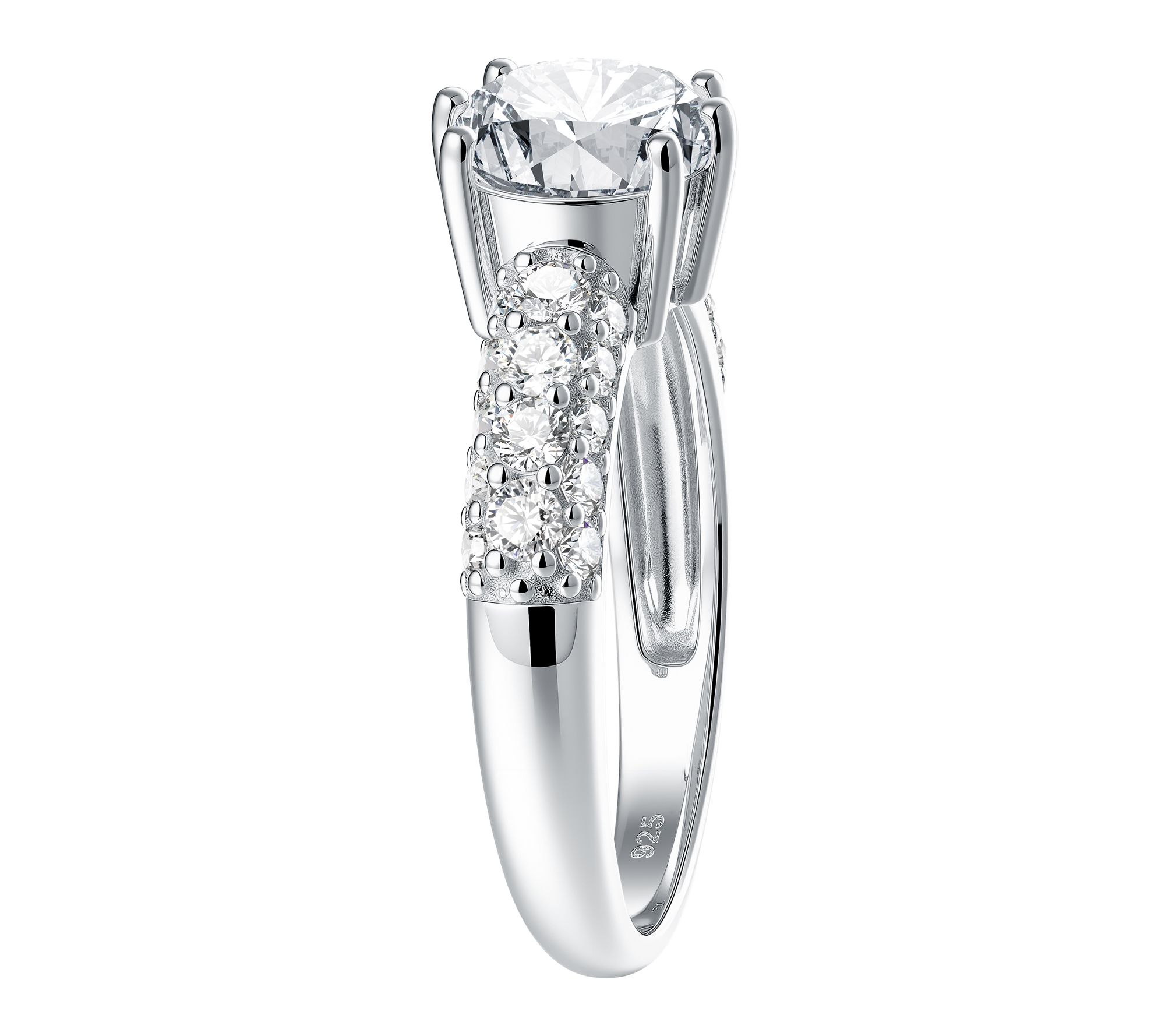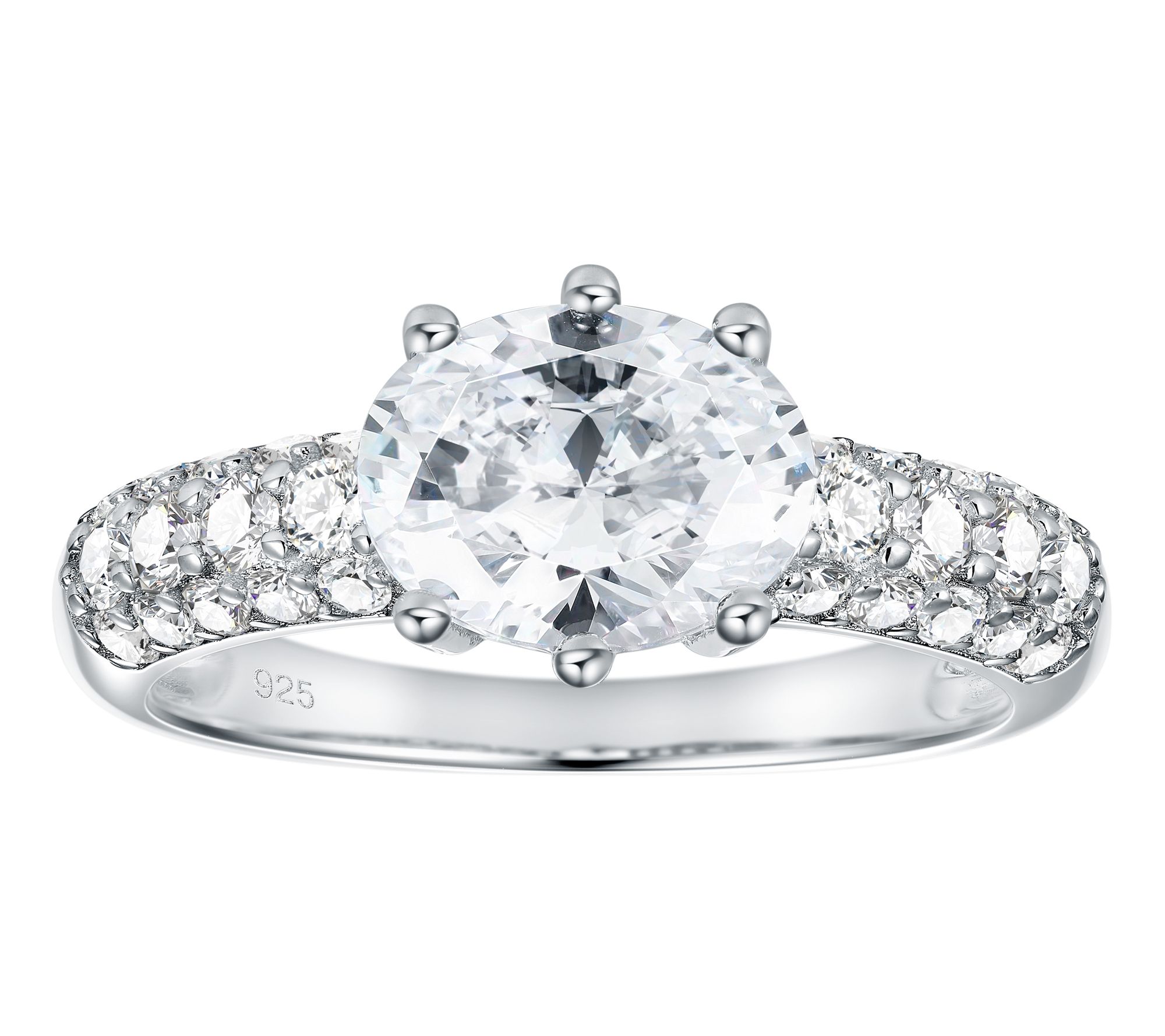 • Oval-cut Diamonique simulated diamond center; pave-set round Diamonique simulated diamonds on shank; polished finish