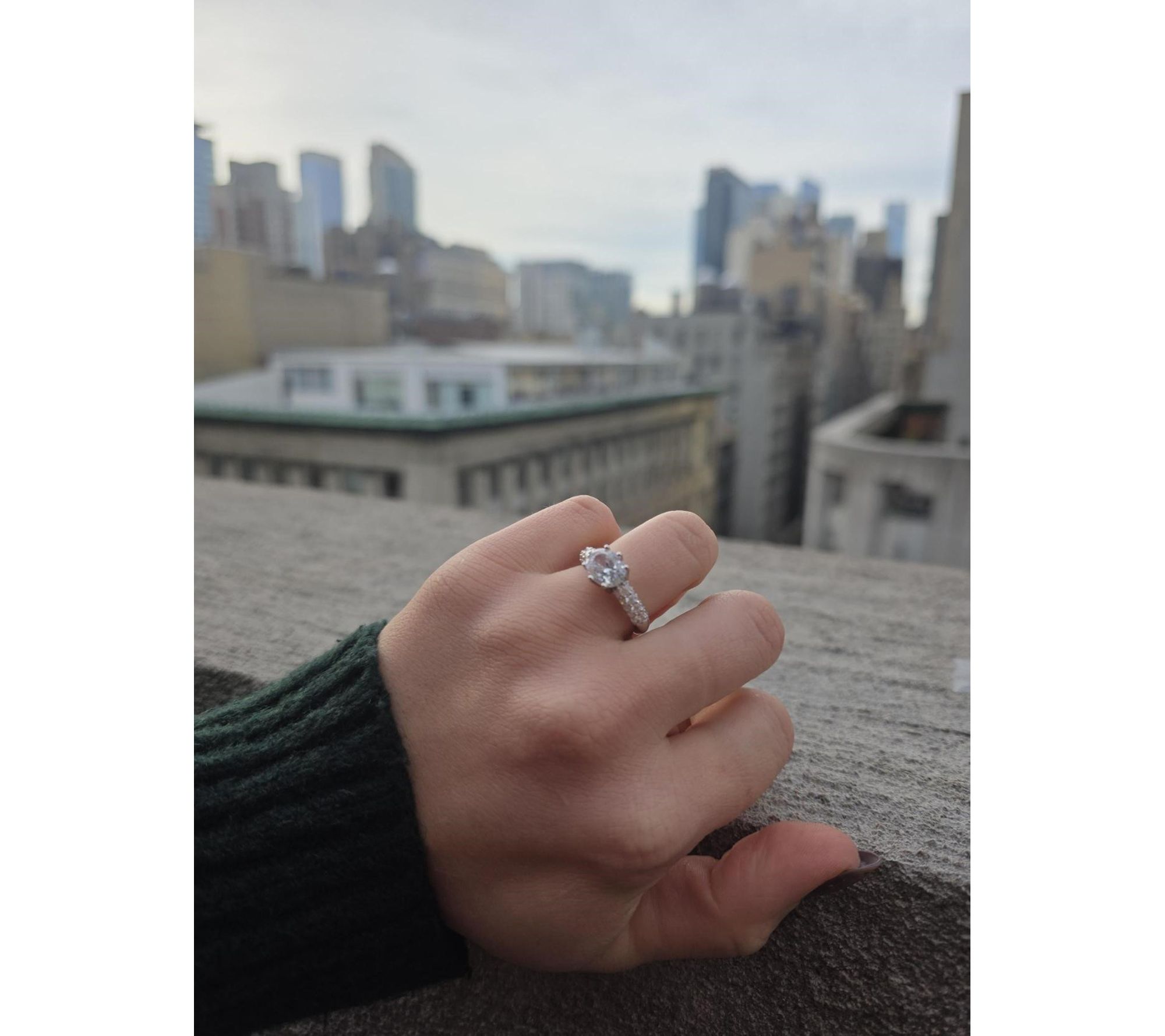 A sparkling oval-cut Diamonique simulated diamond takes center stage on this ring, while round, pave-set Diamonique simulated diamonds act as supporting characters on the shank. An "I do" moment? You bet. But pair its radiant presence with your favorite pieces, too, to instantly elevate your look.