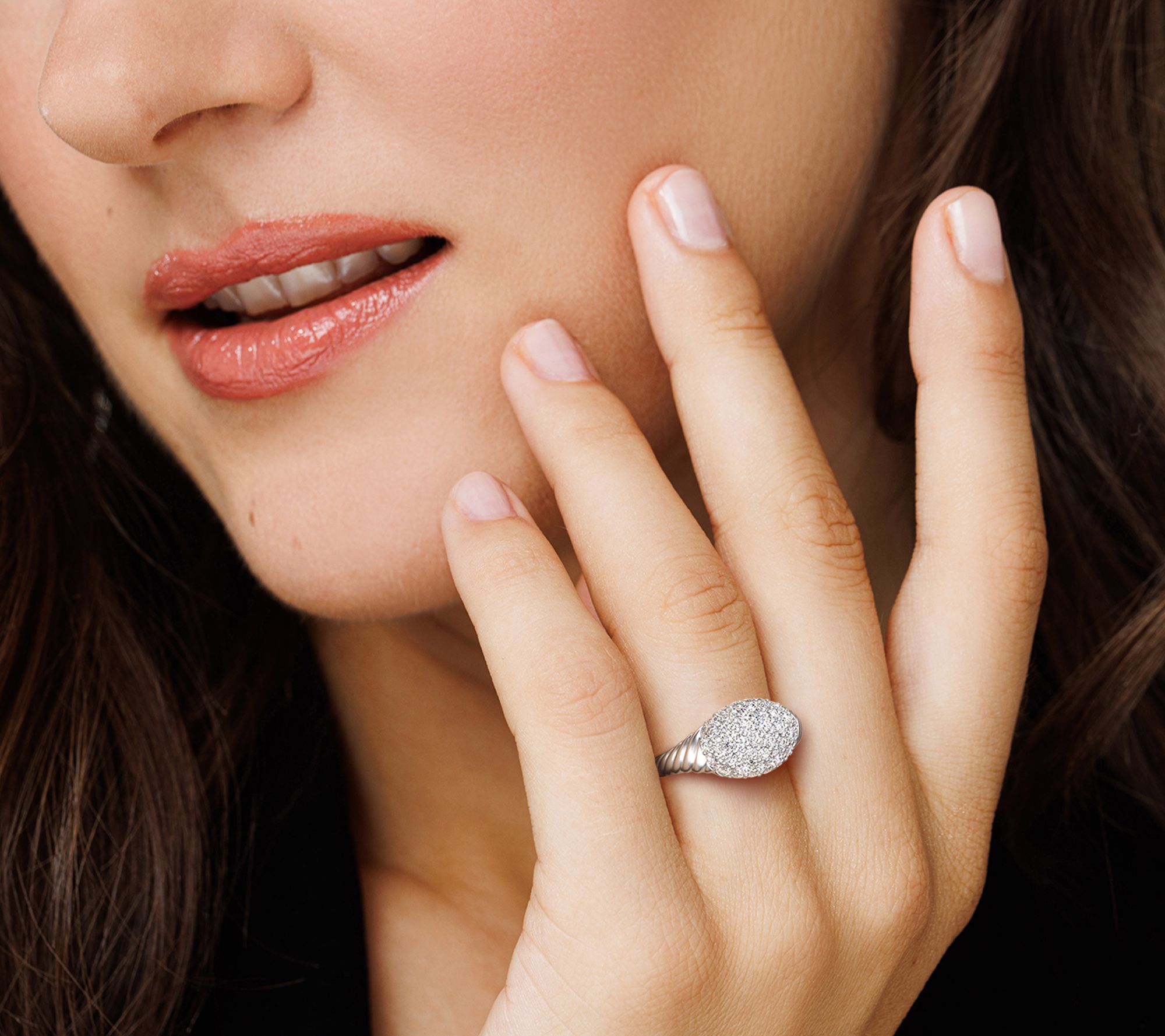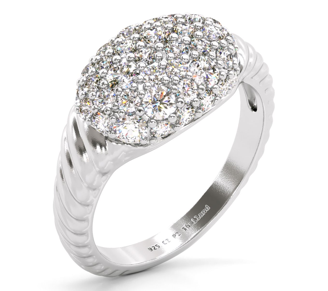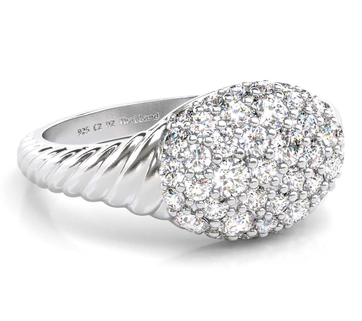 • Twisted rope signet design; cluster of round-cut, pave-set Diamonique simulated diamonds