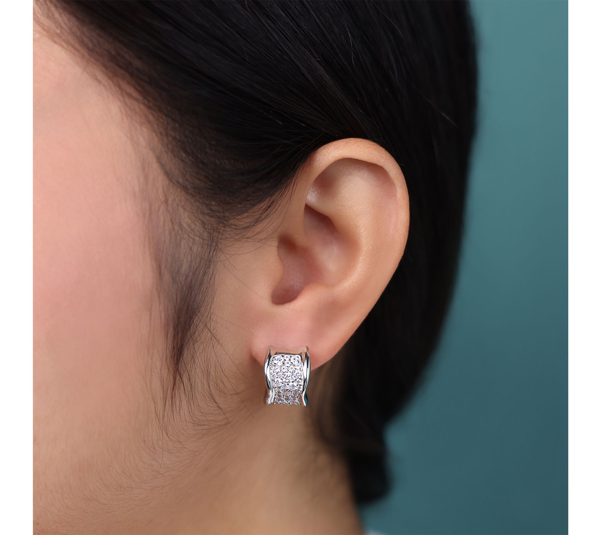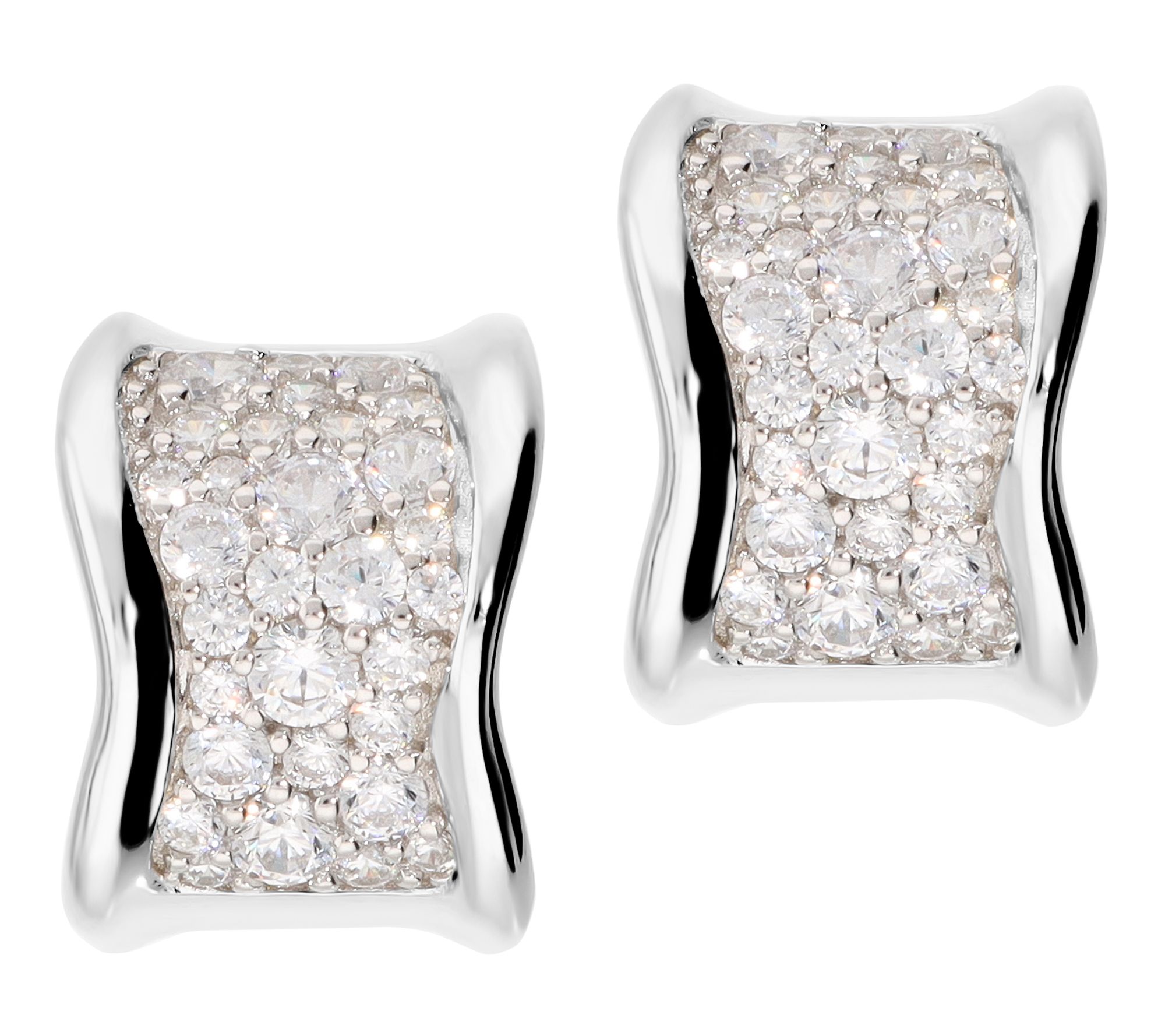 Diamonique Pave Half Hoop Earrings, Sterling Silver