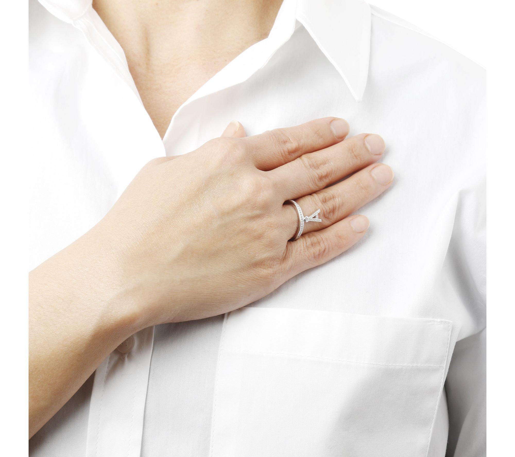 Show off your personal flair with this charming initial ring. The delicate pendant, accented with brilliant Diamonique simulated diamonds, adds a touch of elegance to any attire. Whether you're heading to a casual lunch or a sophisticated evening out, this ring is perfect for every occasion. From Diamonique Silver.