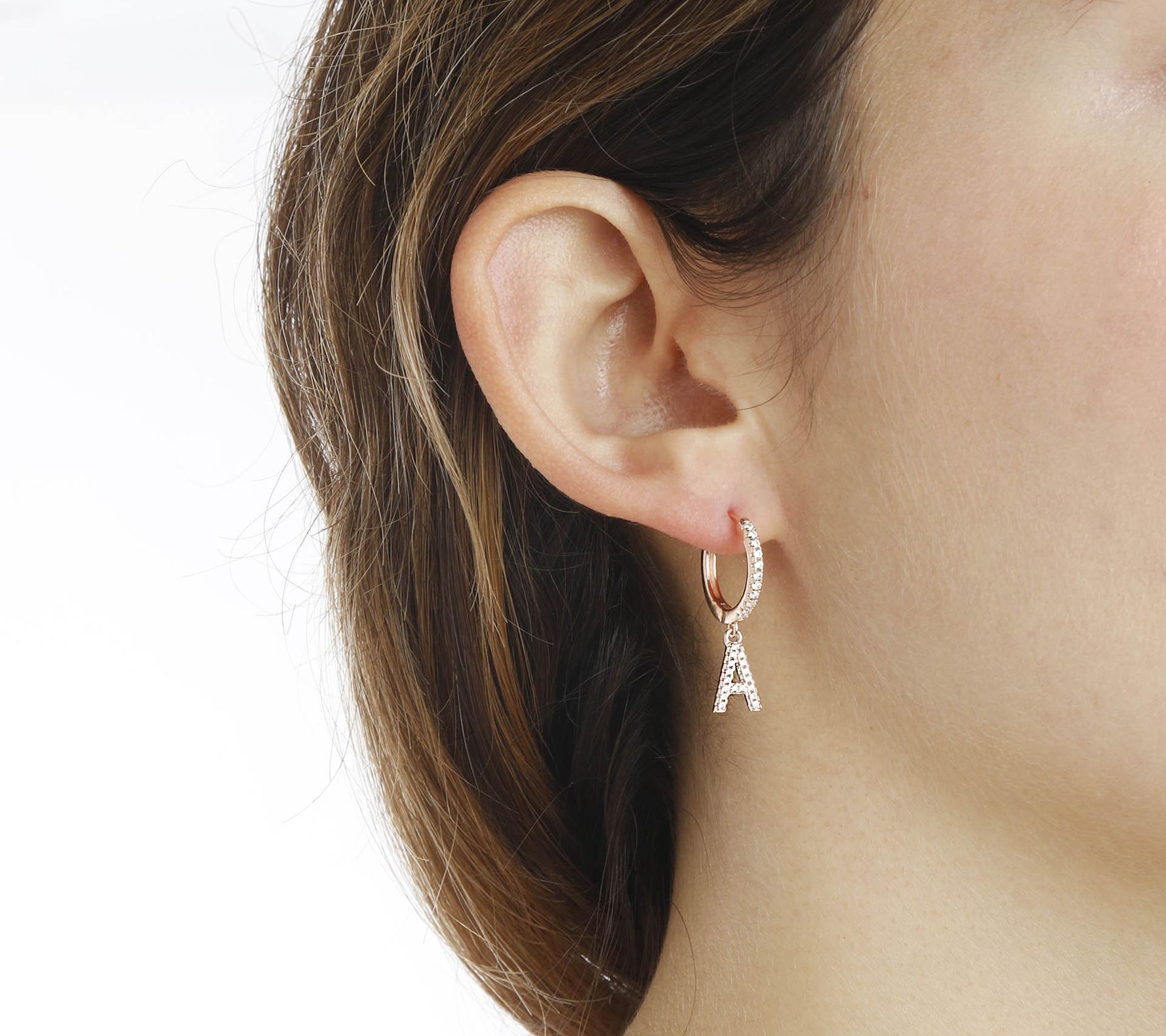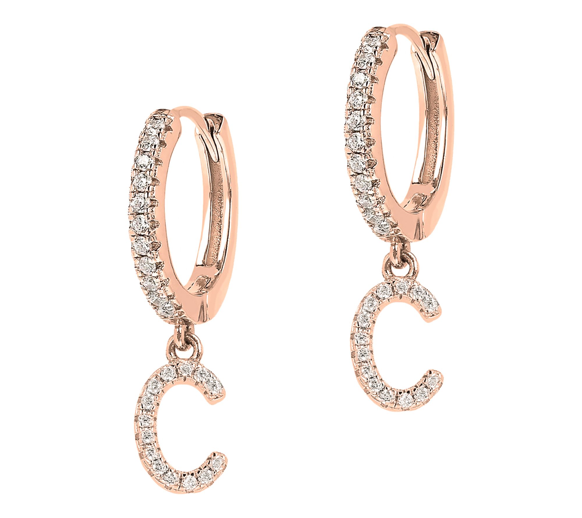 Diamonique Pave Initial Earrings, 14K Rose GoldPlated