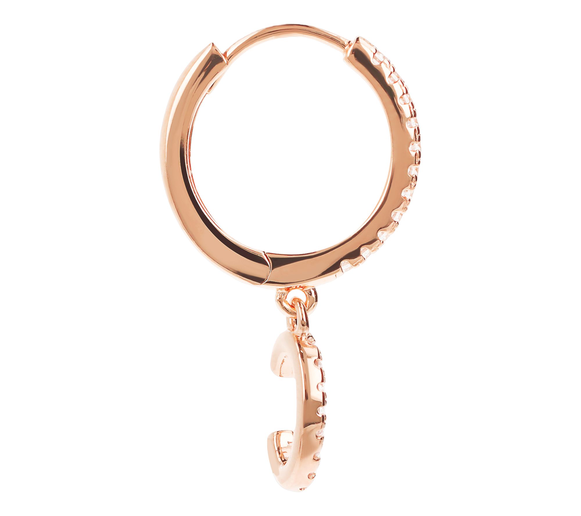 • Dangling initial with pave-set Diamonique simulated diamonds; round, prong-set Diamonique simulated diamonds on front of hoop; polished back