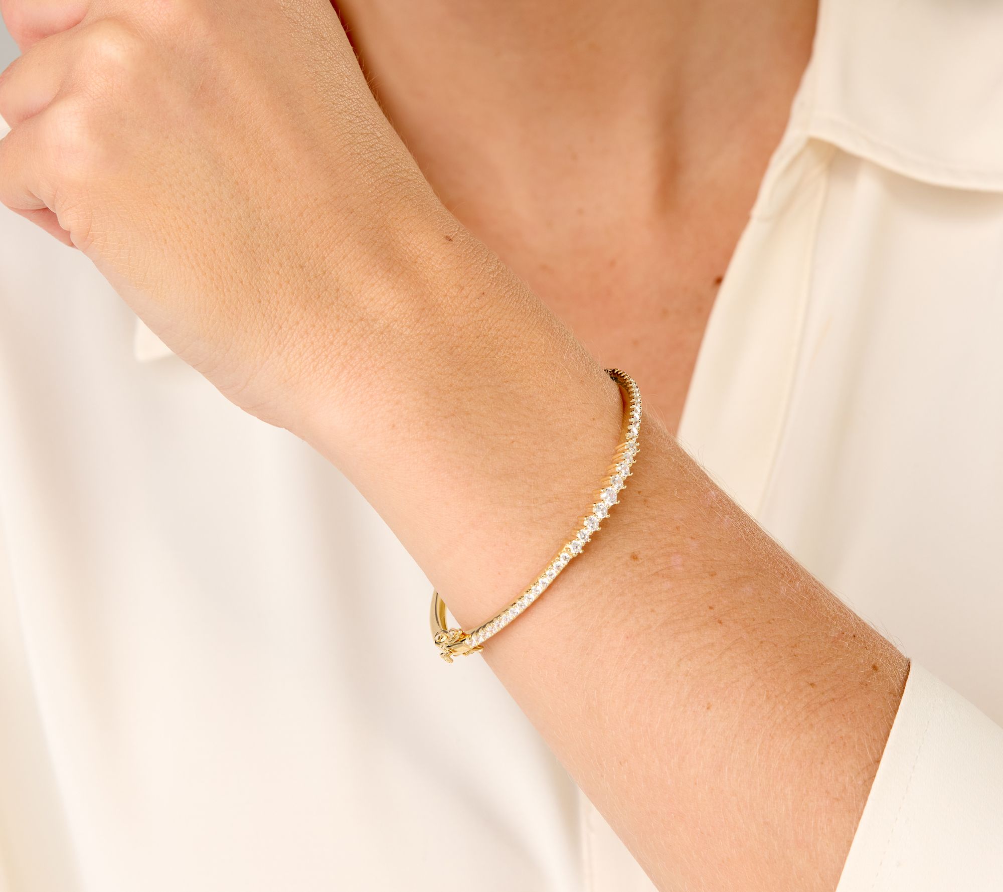Dazzle on the daily with this bangle bracelet that's ready to be radiant for every occasion... or none at all. With its sleek bangle design and sparkling Diamonique simulated diamonds, this piece allows you to pull together a polished look no matter where the day takes you.