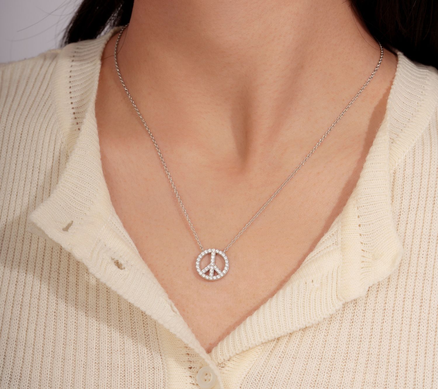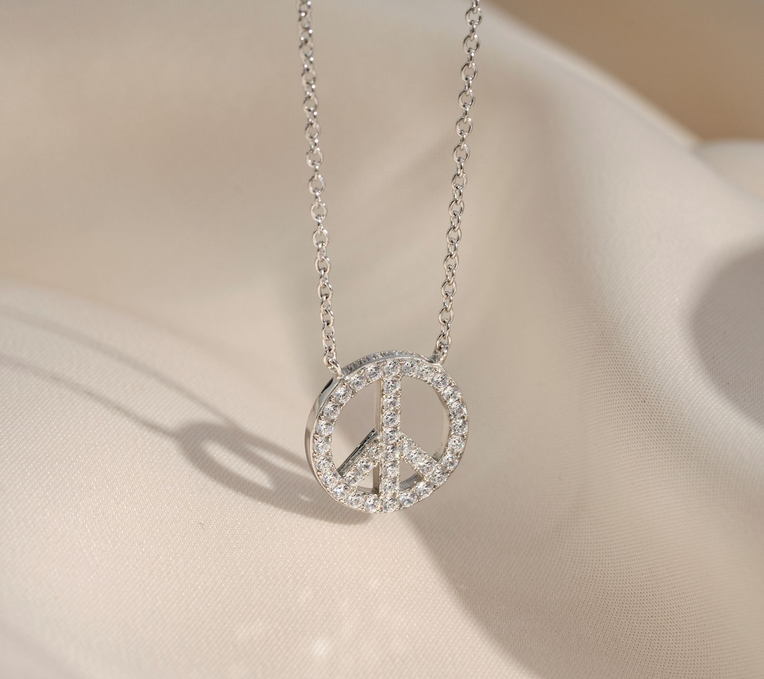 Diamonique Peace Sign Pendant w/ Chain, Platinum Clad