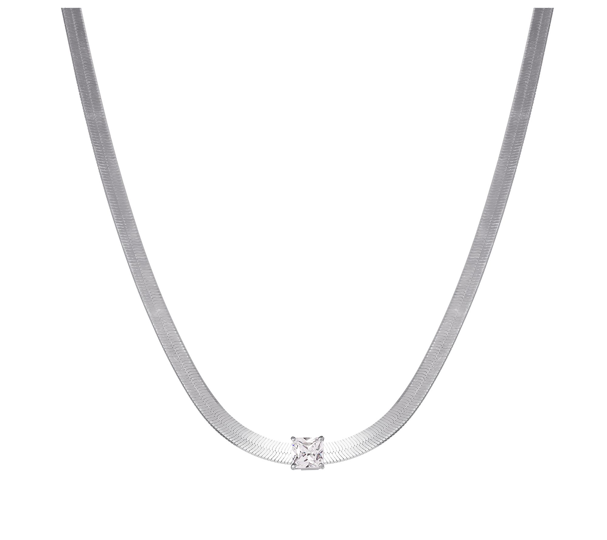 When dainty won't do, reach for this herringbone chain necklace. The substantial neckline-enhancing design cradles a sparkling prong-set solitaire.