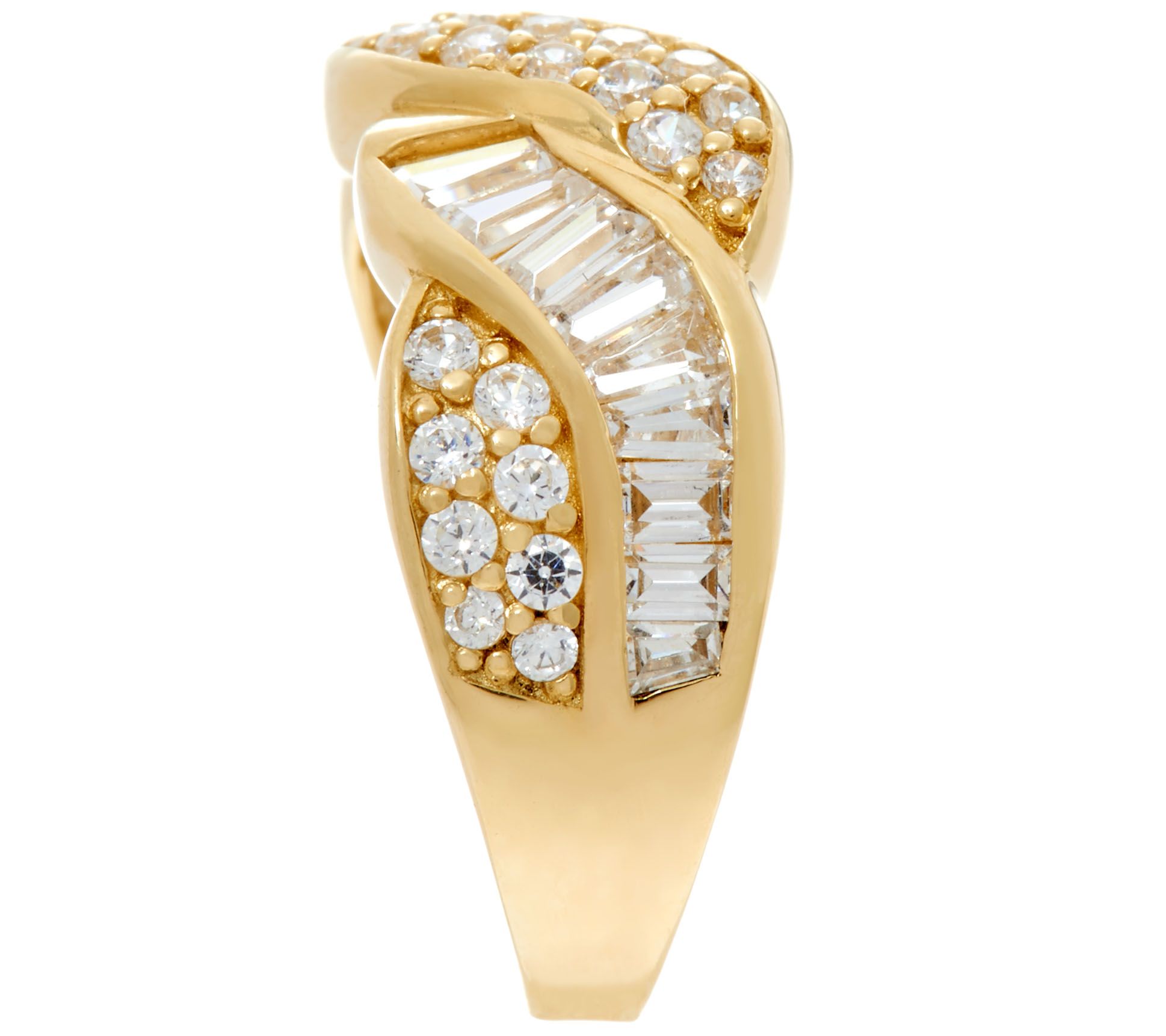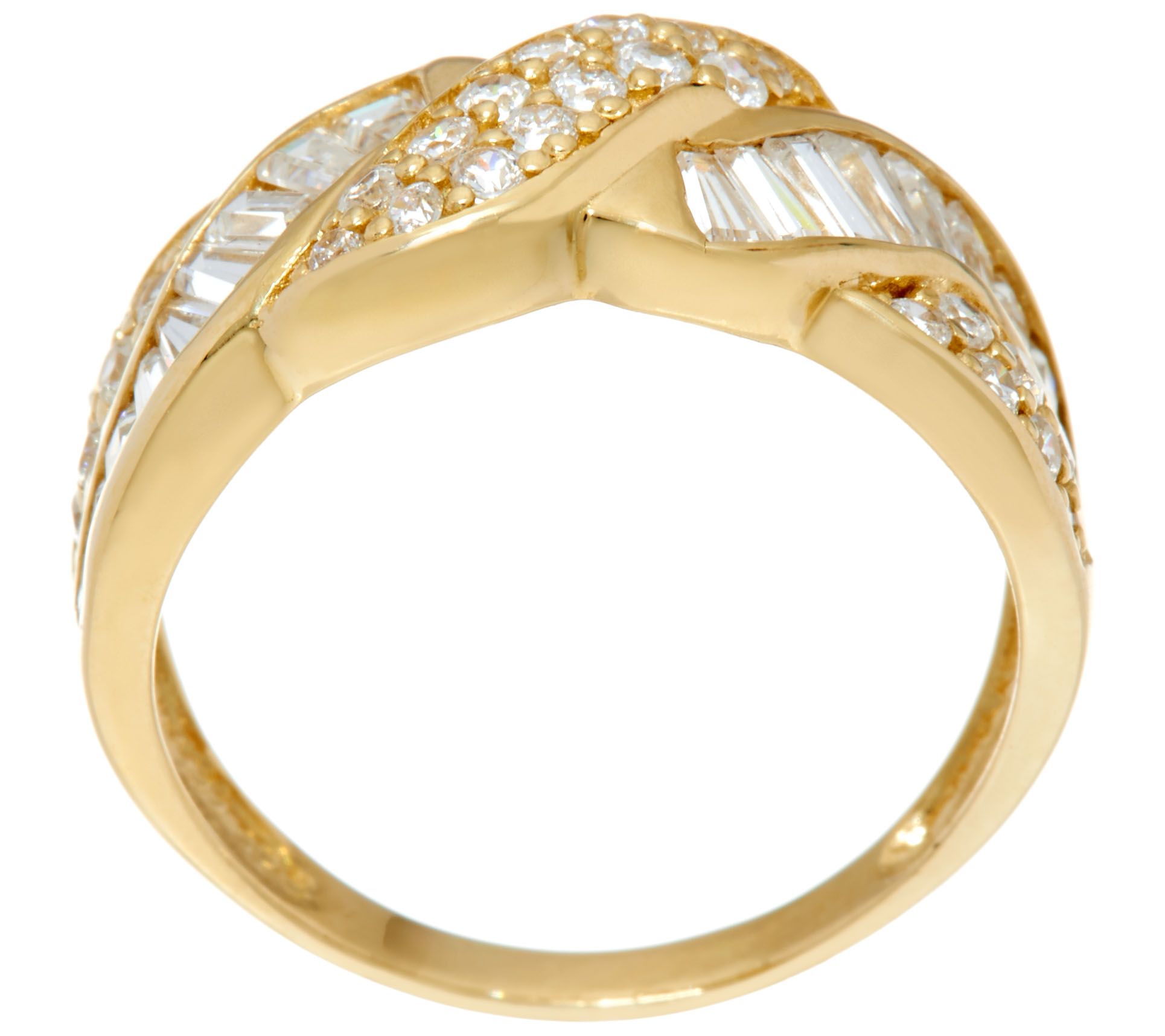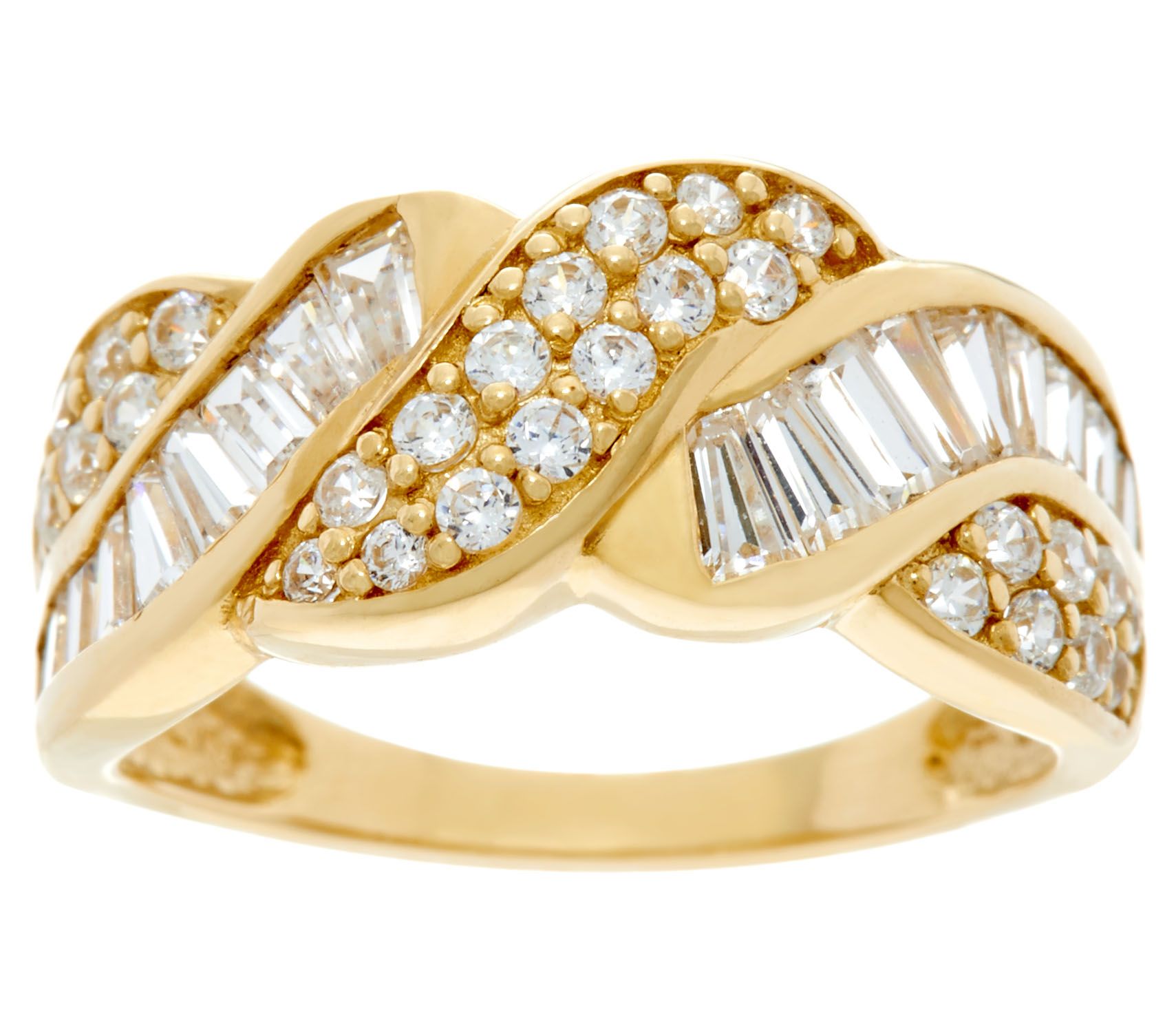 Diamonique Round and Baguette Band Ring, 14K Gold