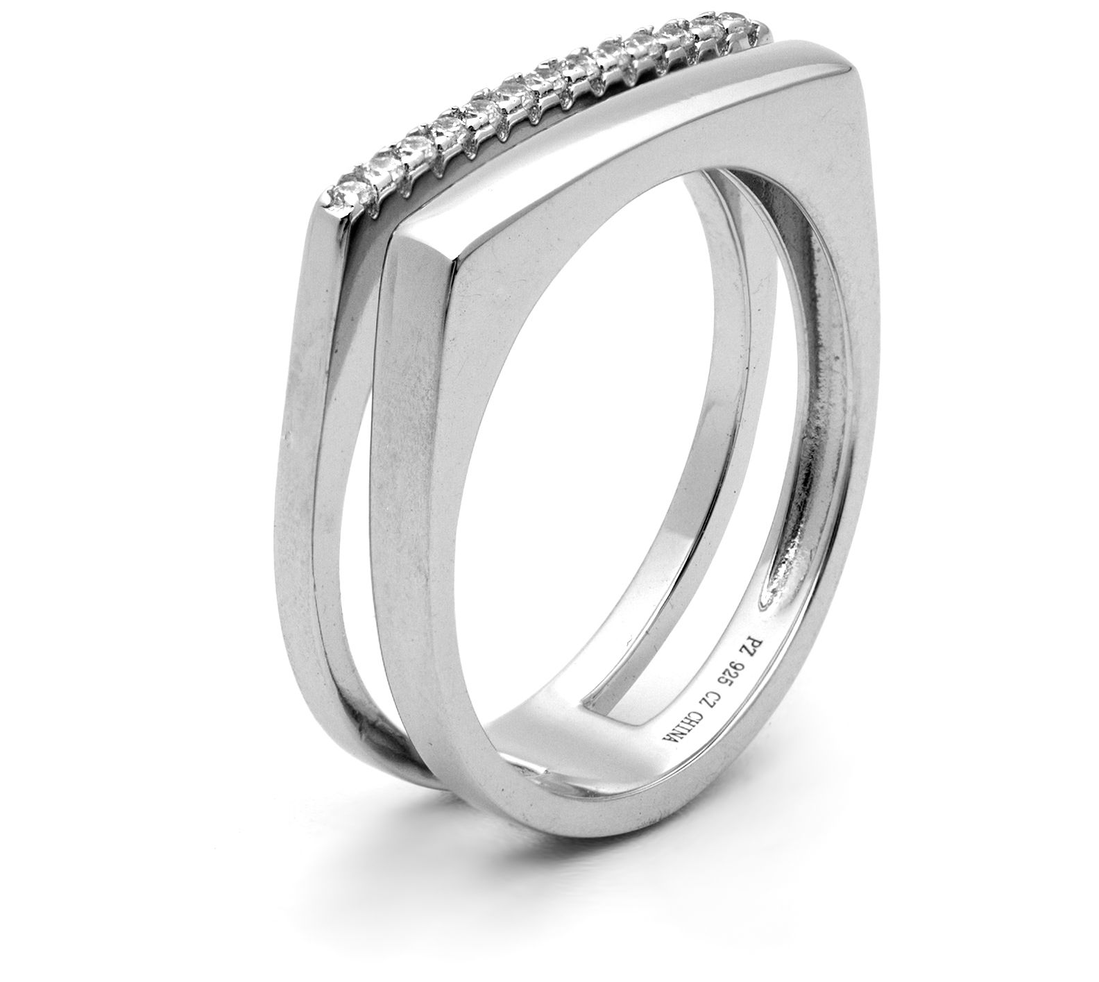 Contemporary and classic all at once, this sterling silver ring is all sparkle and shine. The split row design dazzles on one side and features a smooth polished finish on the other.