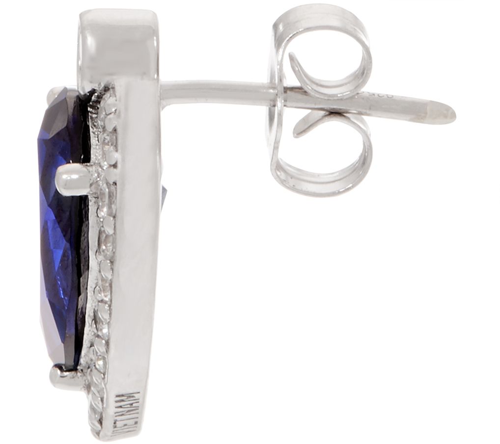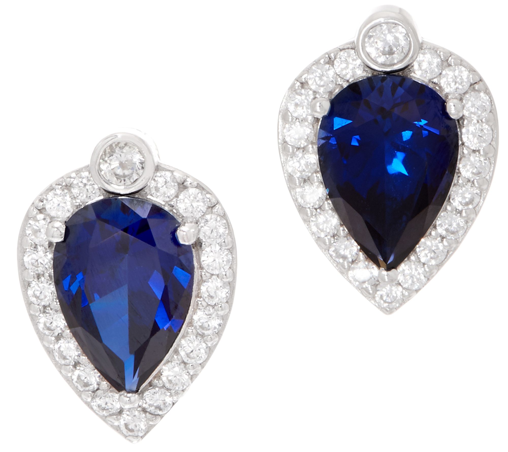 These earrings were designed with royalty in mind, featuring cubic zirconia Diamonique simulated diamonds surrounding a pear-shaped synthetic sapphire.