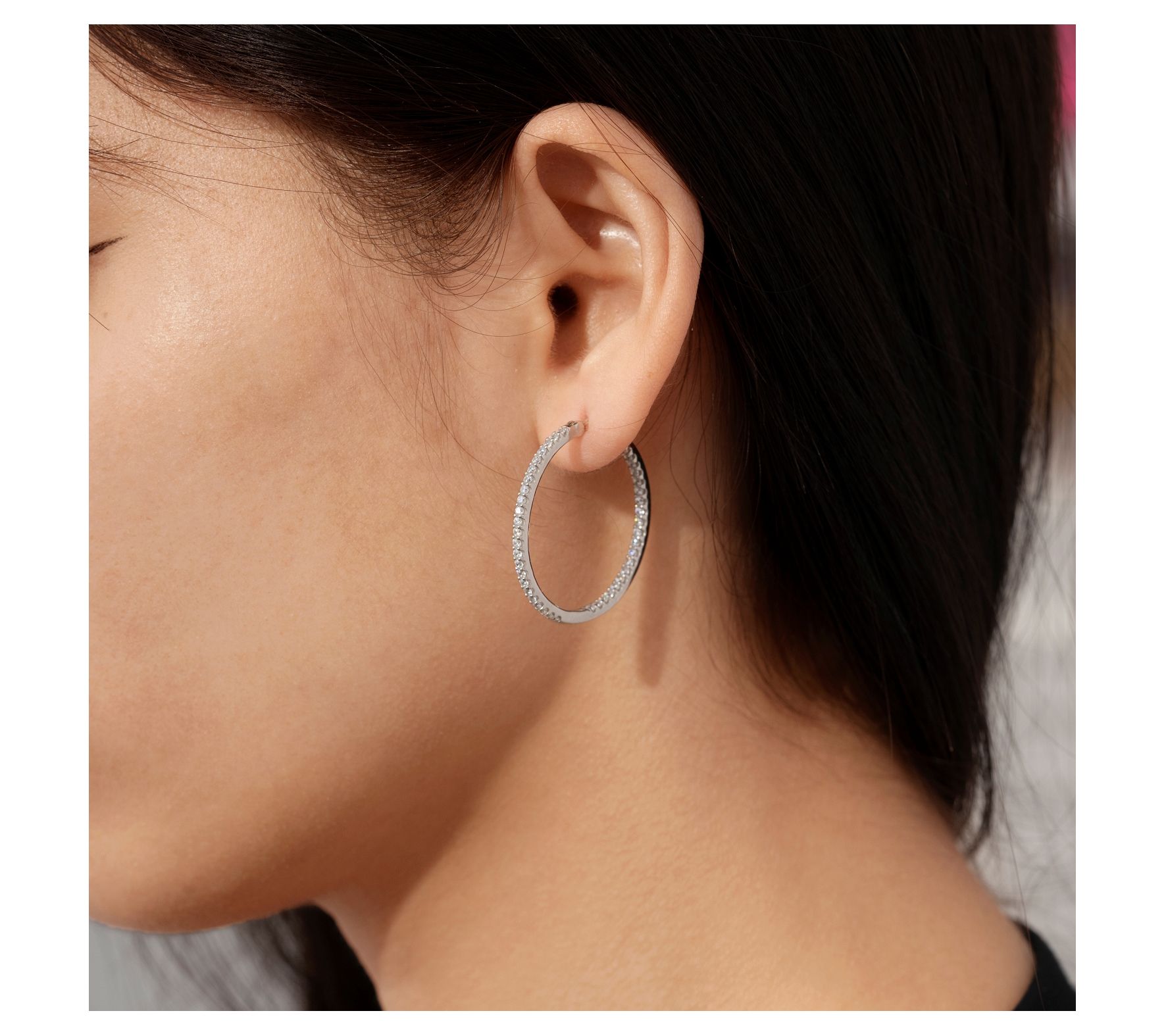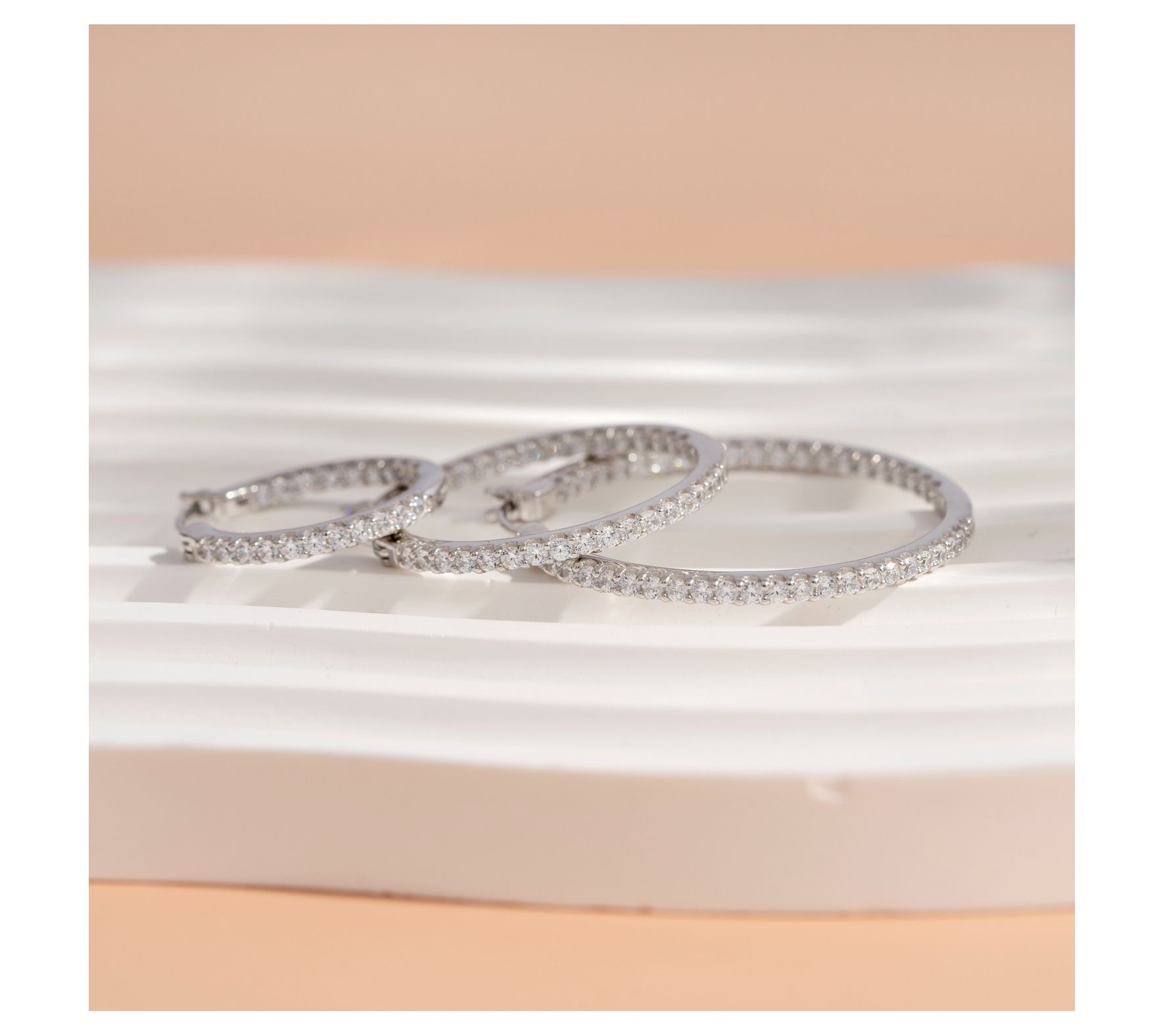 Step up your accessory game with this sparkling set of hoop earrings decorated in countless Diamonique simulated diamonds.