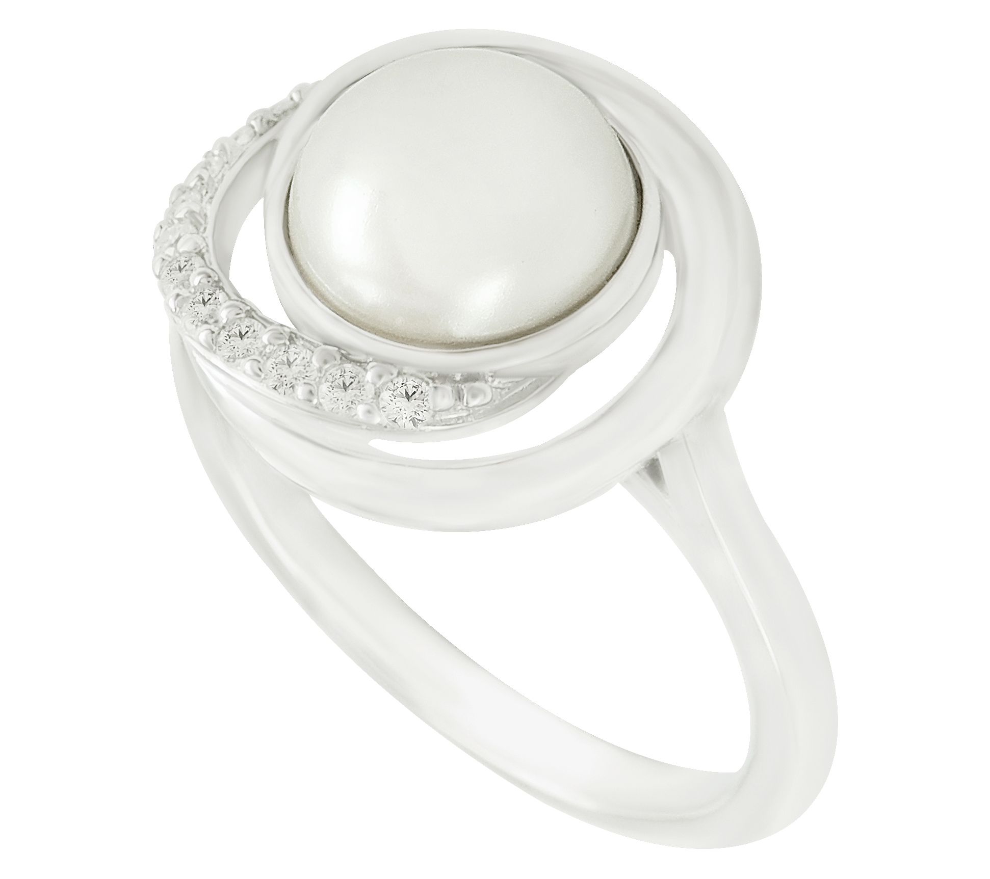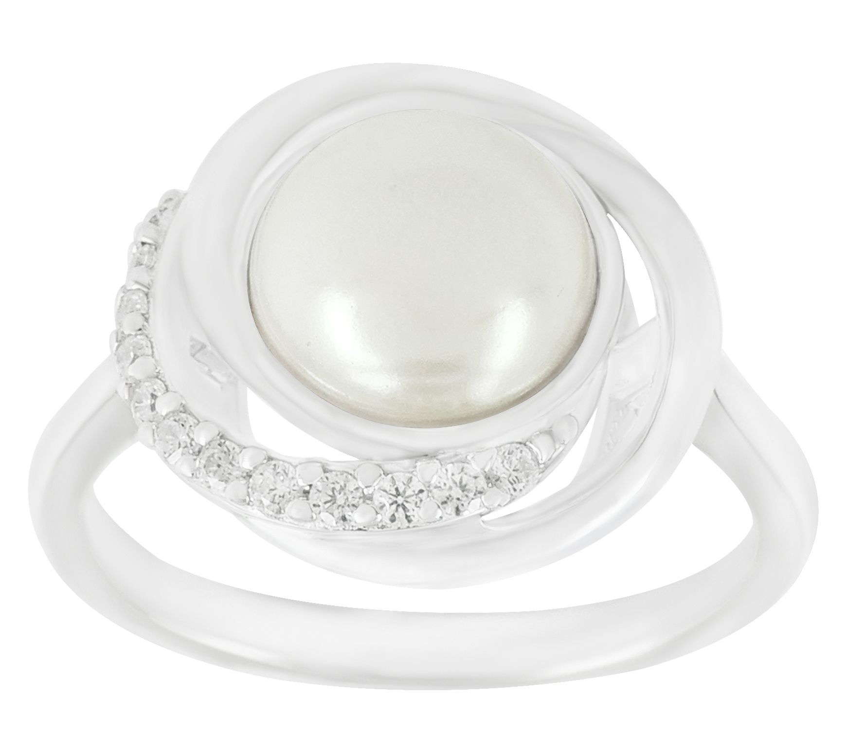 Add a splash of elegance to any occasion with this swirl ring. Crafted in sterling silver, it features a stunning simulated pearl at the center, enveloped by a swirl of intricate details. Perfect for adding a touch of sophistication to your everyday look, or for that special event.