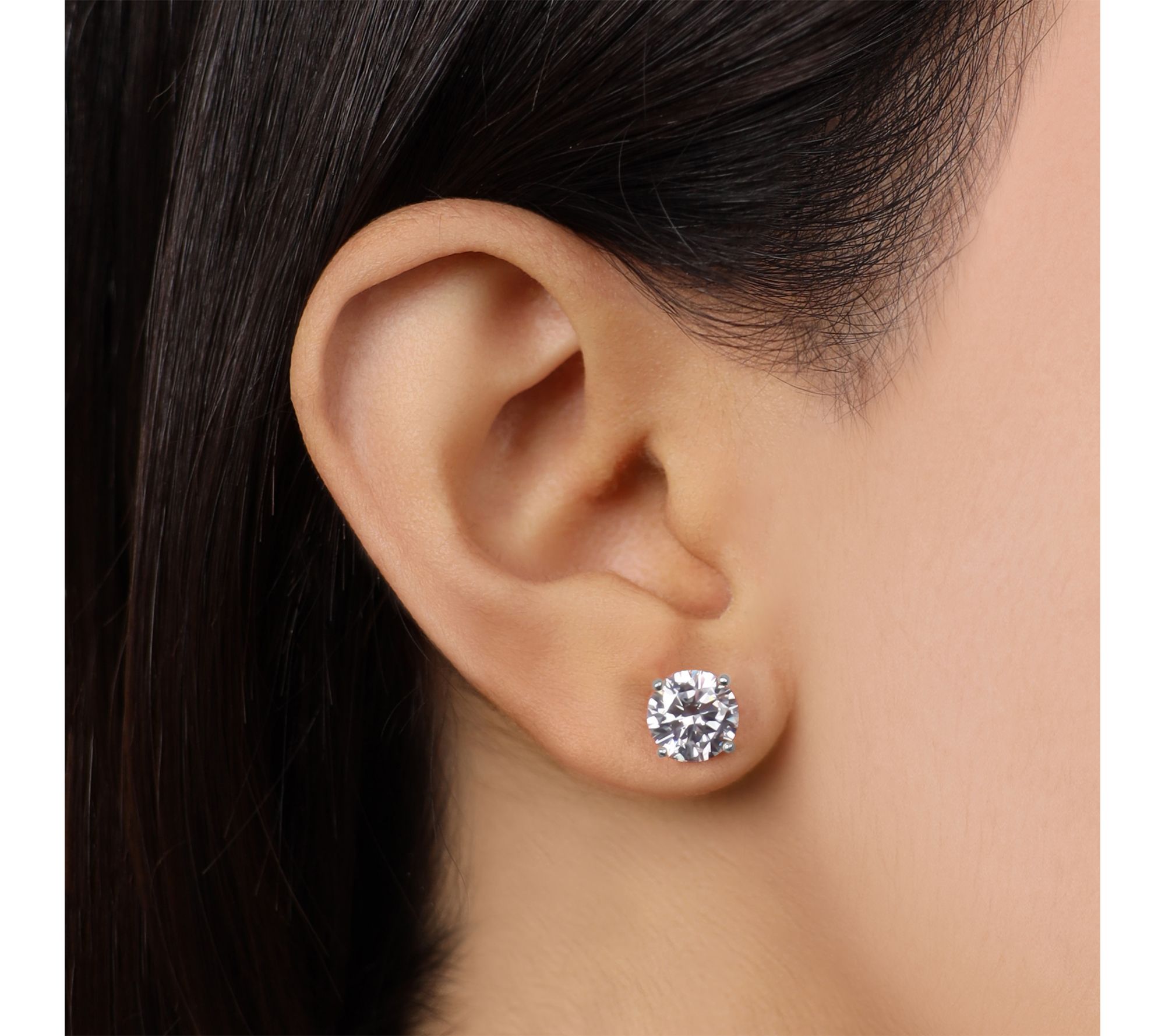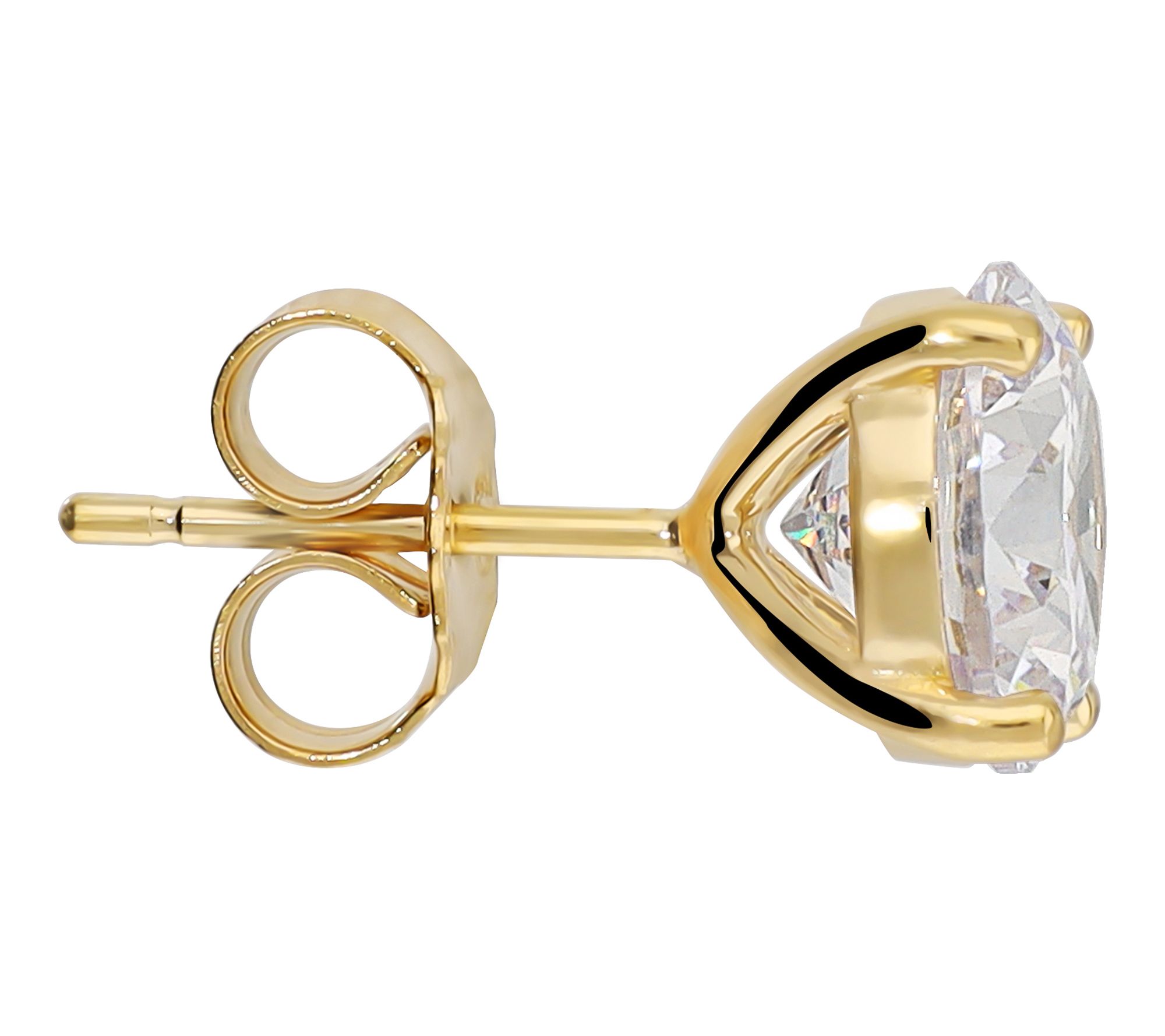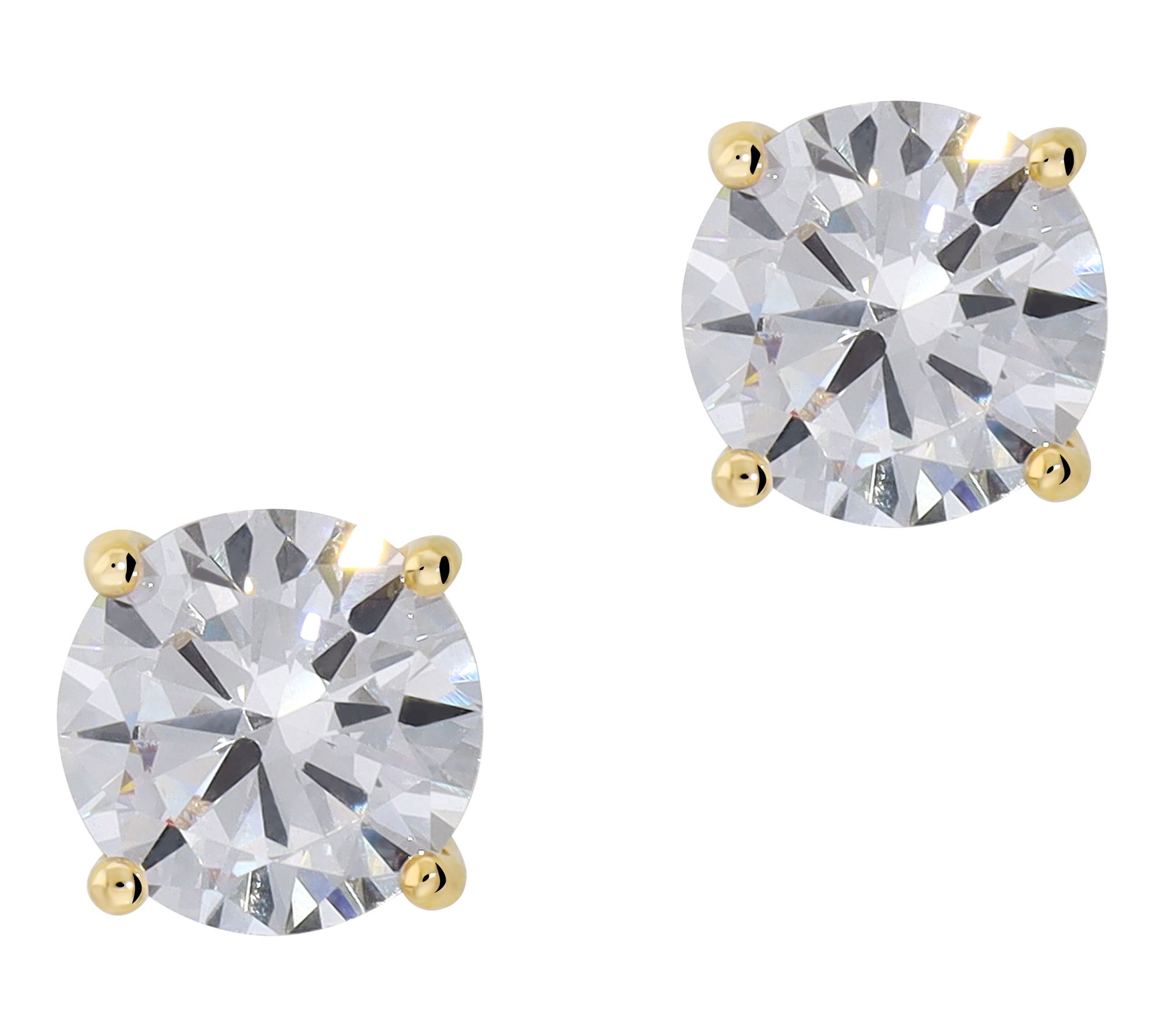• Solitaire stud design; round, prong-set Diamonique simulated diamond; polished finish