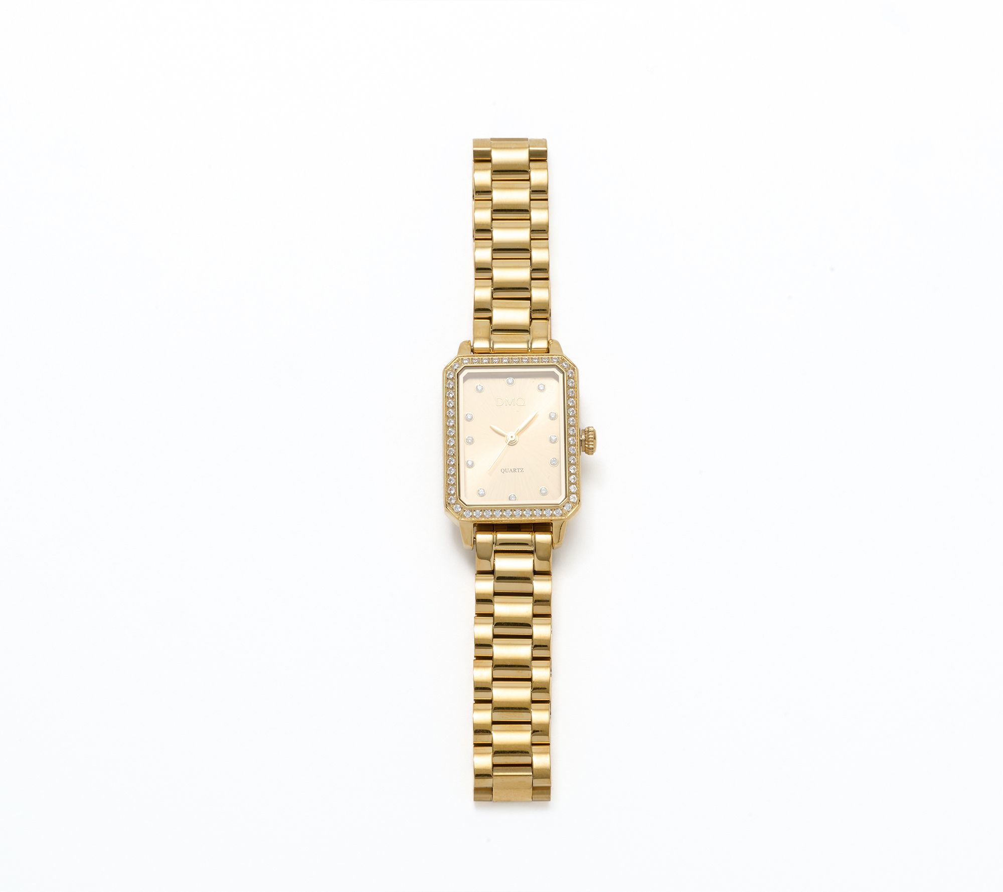 Coveted for its classic style and contemporary sparkle, this stainless steel watch wakes up your wardrobe with its sleek square case studded with cubic zirconia Diamonique simulated diamonds. The adjustable link bracelet and reliable performance make this accessory your go-to for everyday wear.