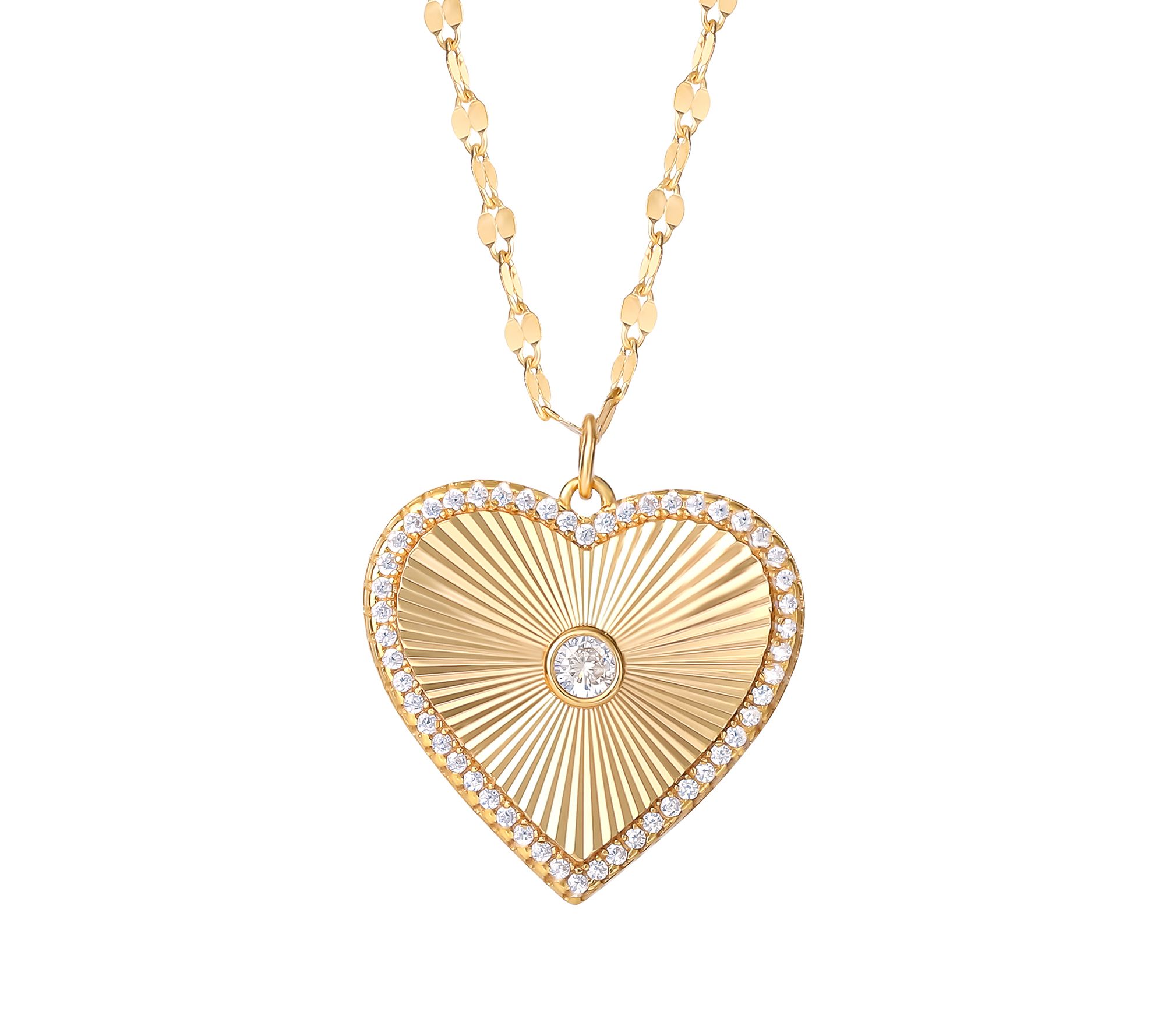 Heart design with diamond-cut starburst, round, bezel-set Diamonique simulated diamond, and pave-set Diamonique simulated diamonds; sparkle chain; polished finish