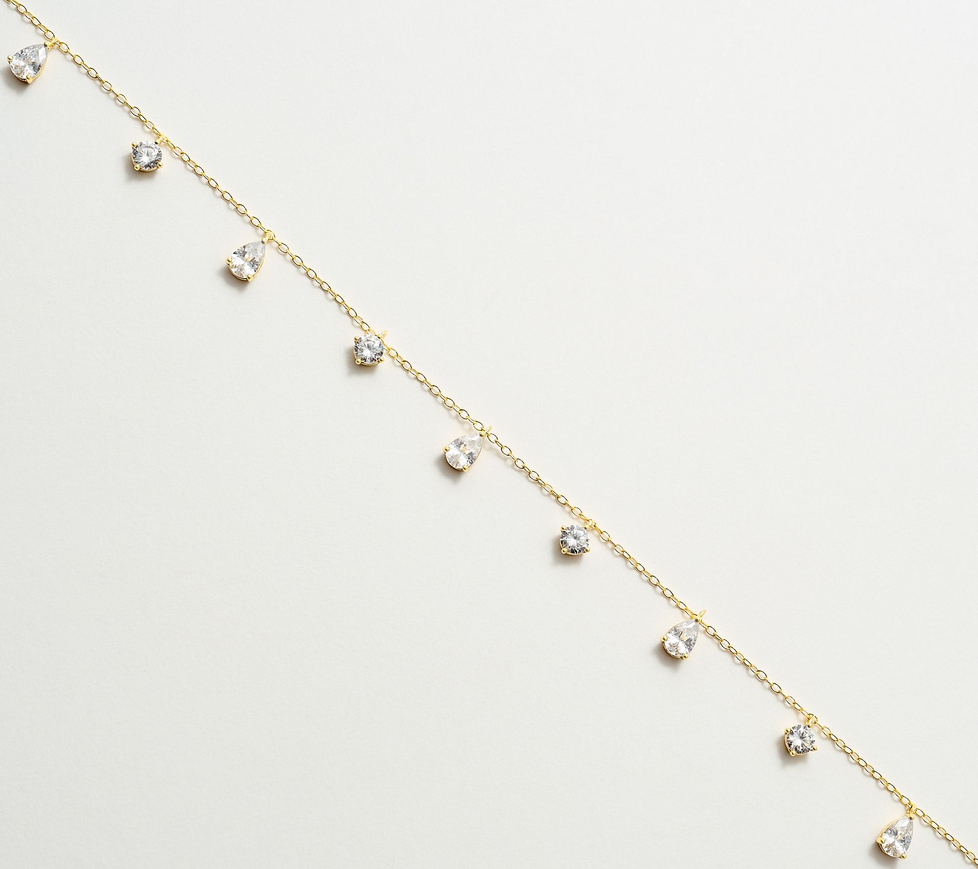 Let this Diamonique simulated diamond station drop necklace bring a fresh sense of movement and sparkle to your style. Radiant pear and round Diamonique simulated diamonds catch the light as you mingle at dinner or add a luxe accent to your favorite V-neck.