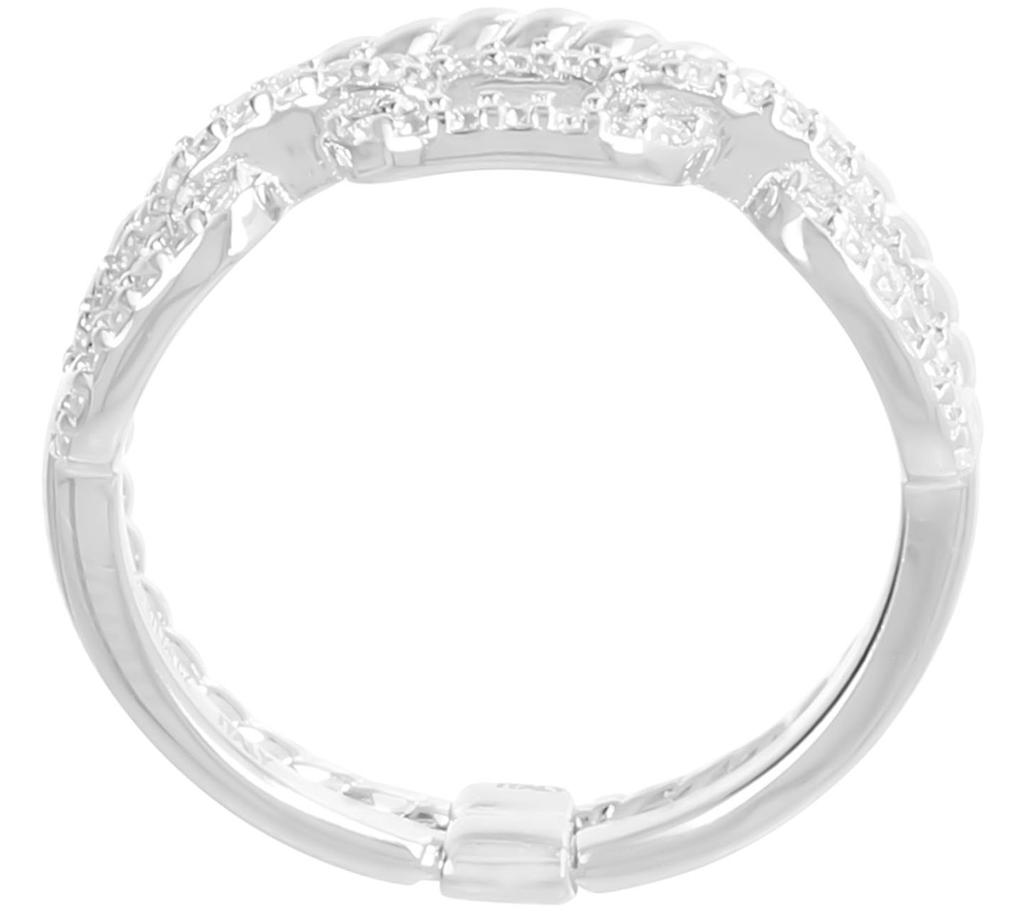 • Double-band ring with one twisted band and one oval-link band with pave-set, round-cut Diamonique simulated diamonds; polished finish