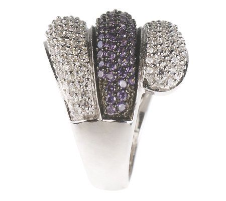 • Wrap design with center row of pave-set, round Diamonique simulated amethyst stones in black rhodium plating; two outer rows of pave-set, round Diamonique simulated diamonds