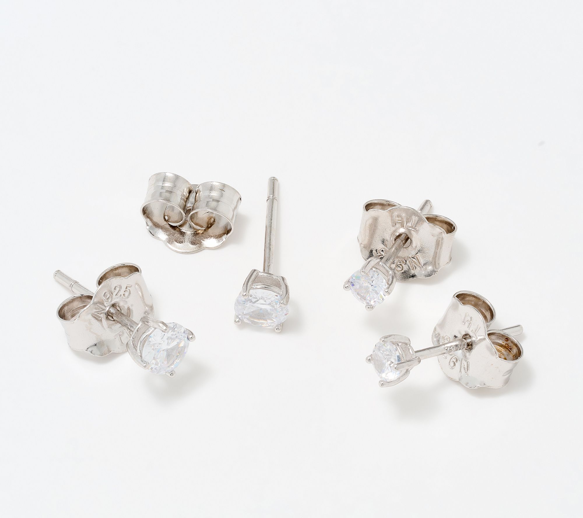 Diamonique Sterling Silver 4-Piece Holiday Gift Set with Jewelry Box