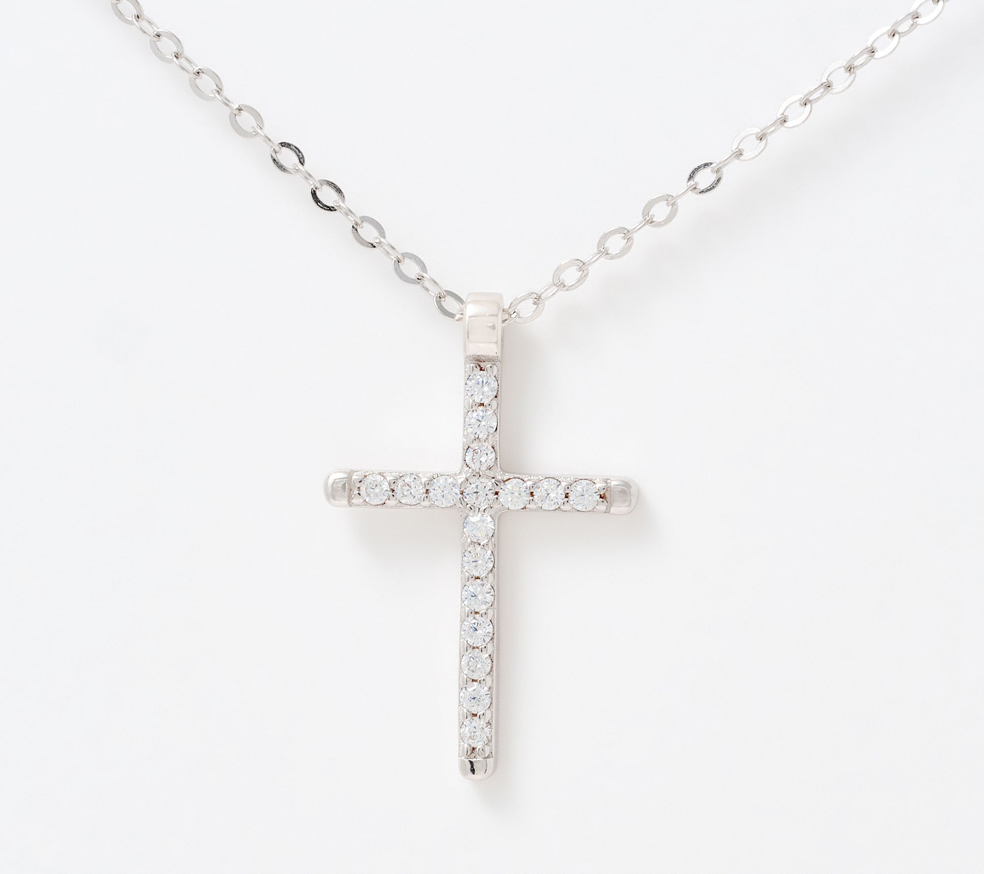 • Cross pendant necklace: 17 Diamonique simulated diamonds