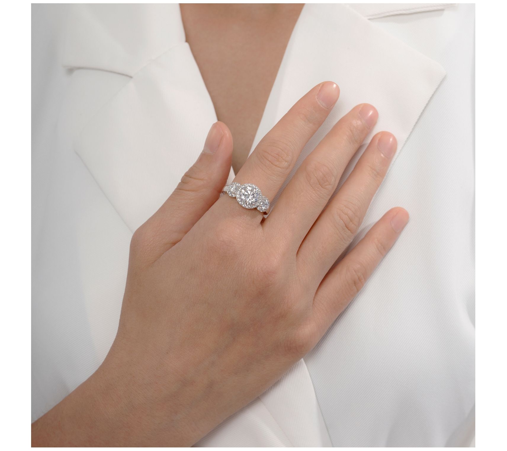 Total Diamonique simulated diamond weight are approximate: Center 2.00 carats; Sides 3/4 carat; simulated diamonds are cubic zirconia