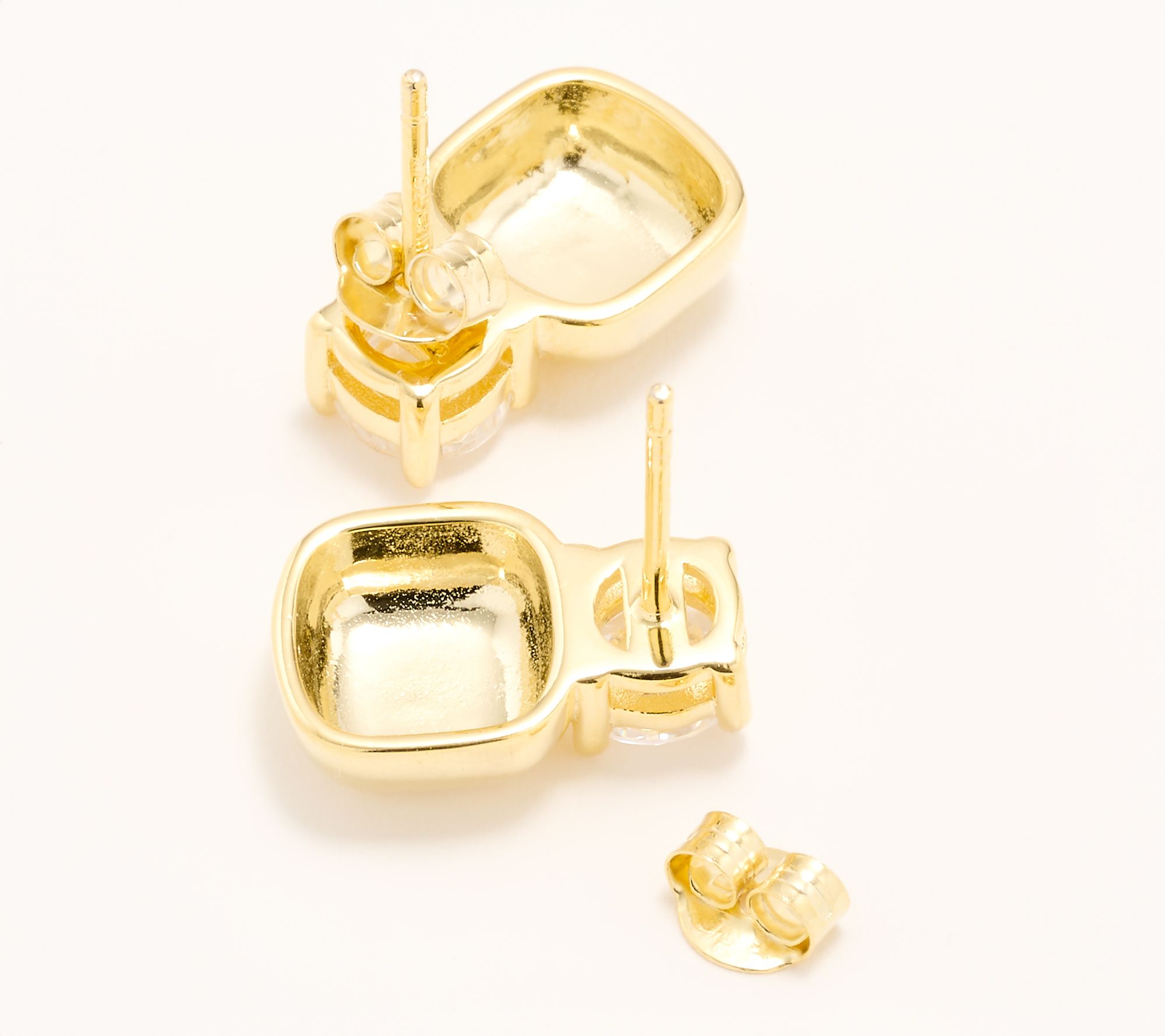 A glossy square-shaped stud paired with classic sparkle, these believable earrings make it easy to keep up with the trends. Accessorize with their fun freshness for weddings, holidays, and everyday life -- they're sure to get noticed!