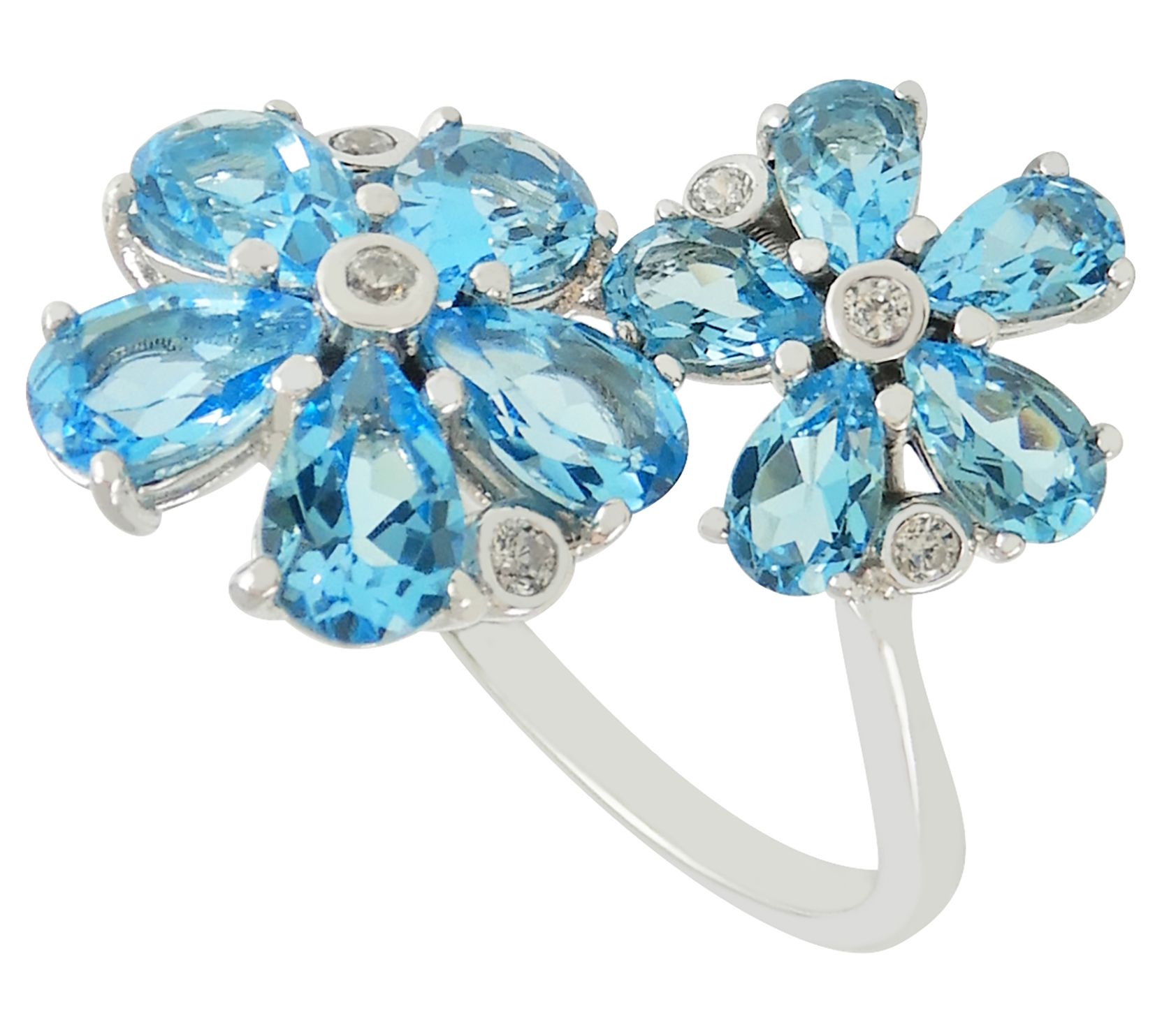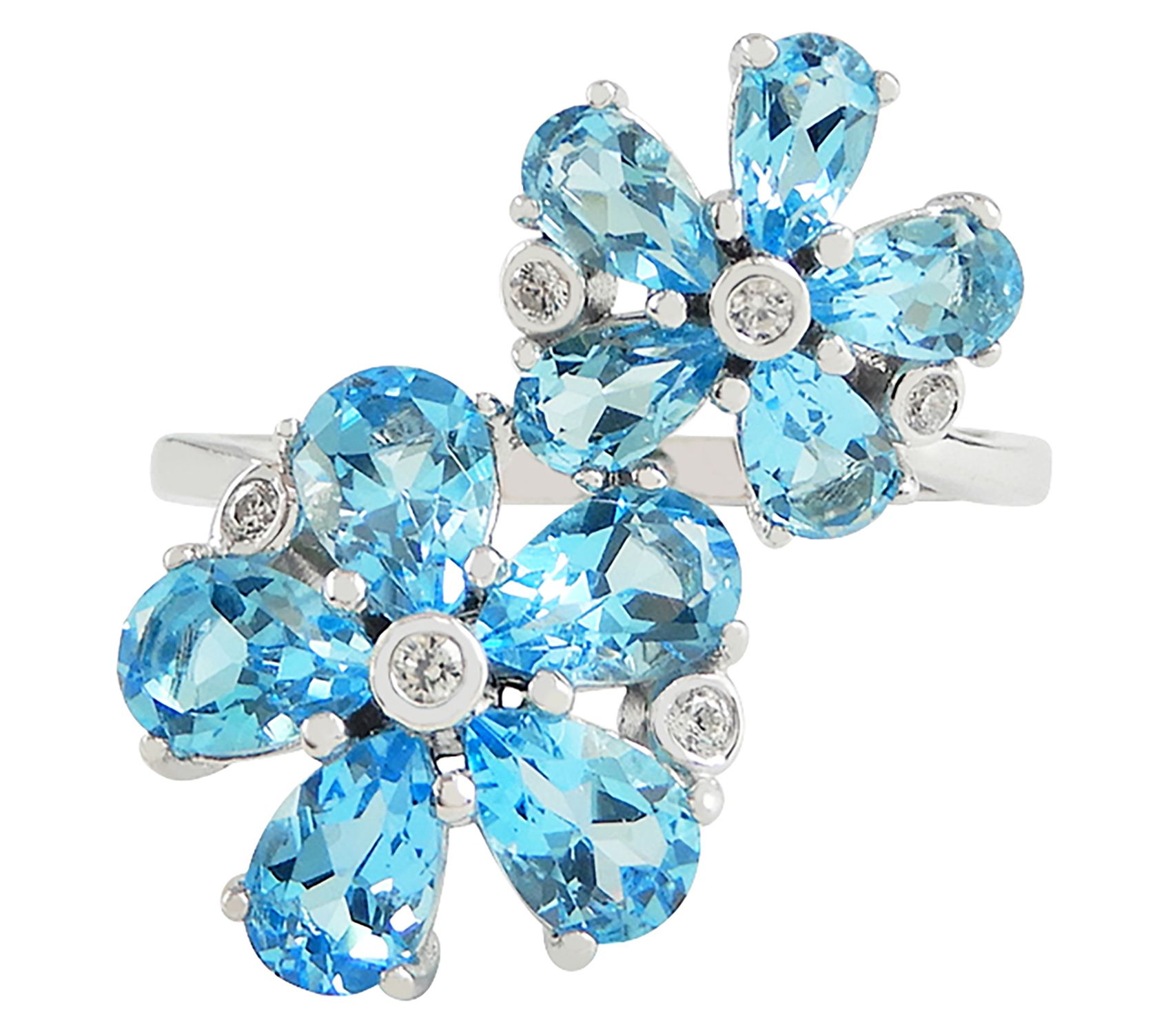 Top off your look with a touch of springtime whimsy! This playful floral ring is designed with Swiss blue topaz and cubic zirconia Diamonique simulated diamonds for endless sparkle.