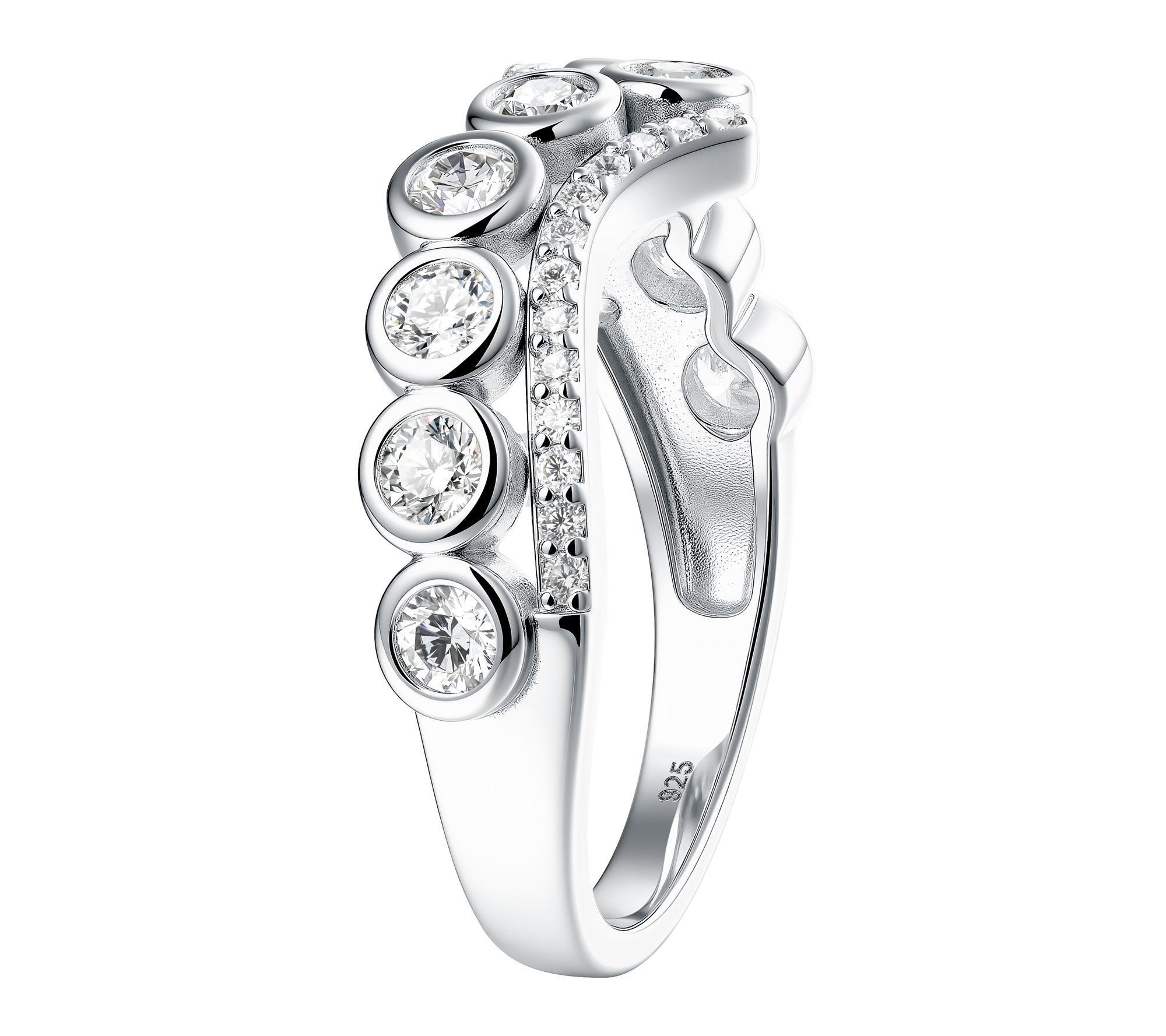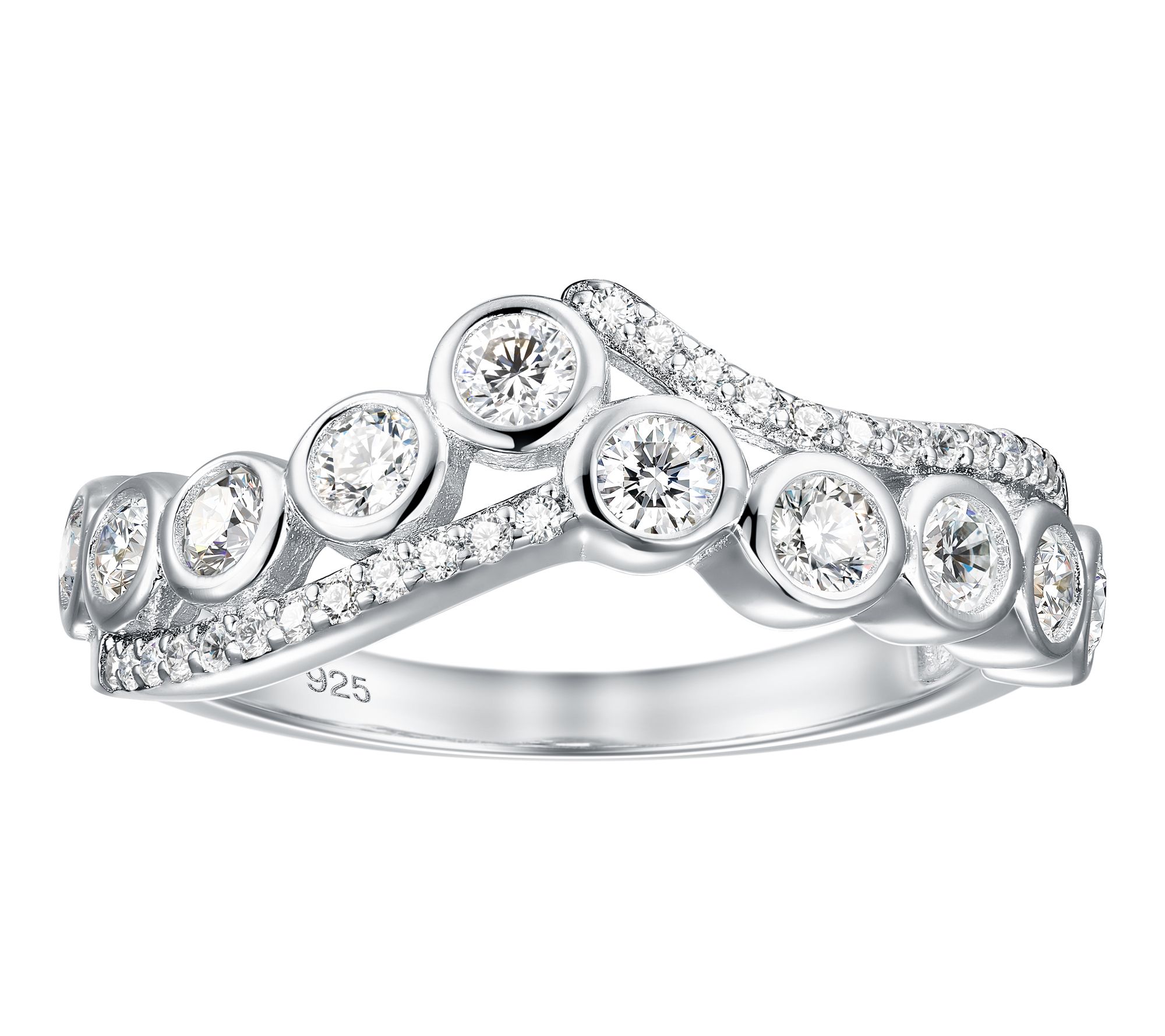 Diamonique Two Row Chevron Ring, Sterling Silver