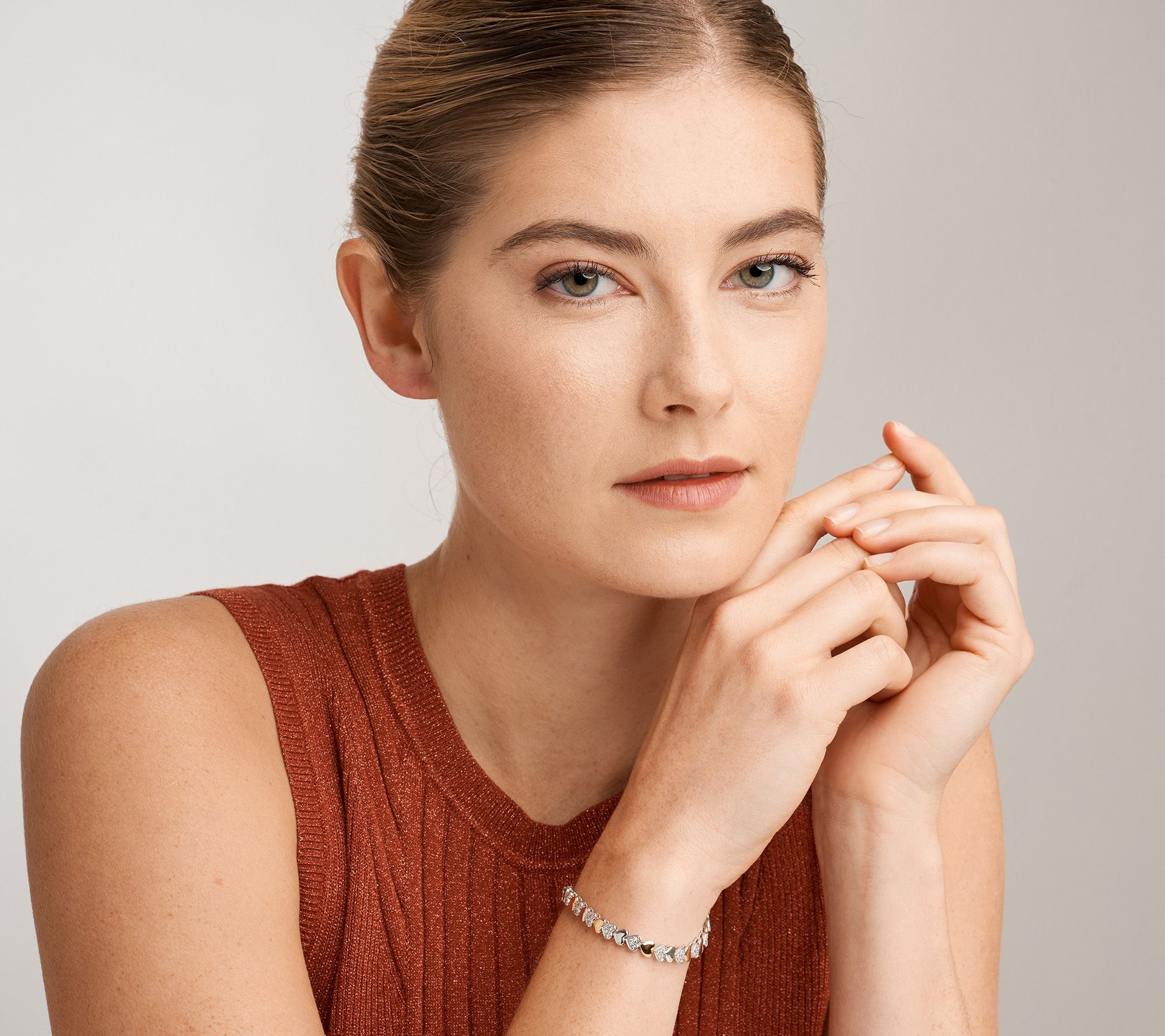 It's time to serve up some serious sparkle (with a look you'll love). This two-tone tennis bracelet puts brilliance in your court with dazzling heart-shaped Diamonique® simulated diamonds. Who's stacking up a glam slam? You are.