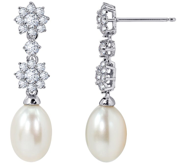 Dangle design with prong-set Diamonique simulated diamond flower stations; cultured freshwater pearls hang below