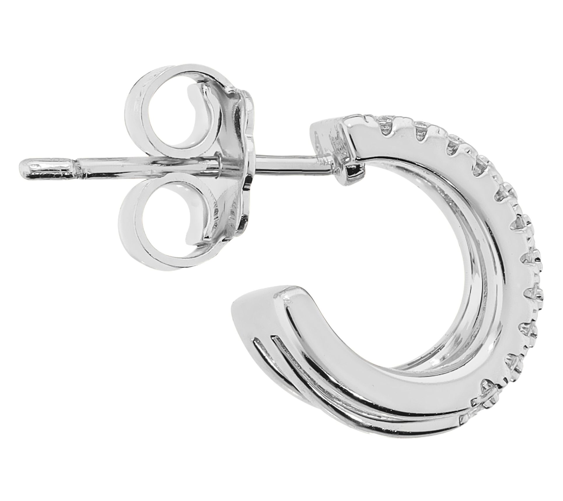 Mixing trend-forward Italian style with radiant sparkle, these hoops are ready to shine for everything from casual outings to special celebrations. Mini, multi-strand open hoops play host to an array of shimmering Diamonique simulated diamonds, delivering the dazzle of fine jewelry with everyday ease. Choose your favorite finish to match with jeans or your little black dress.