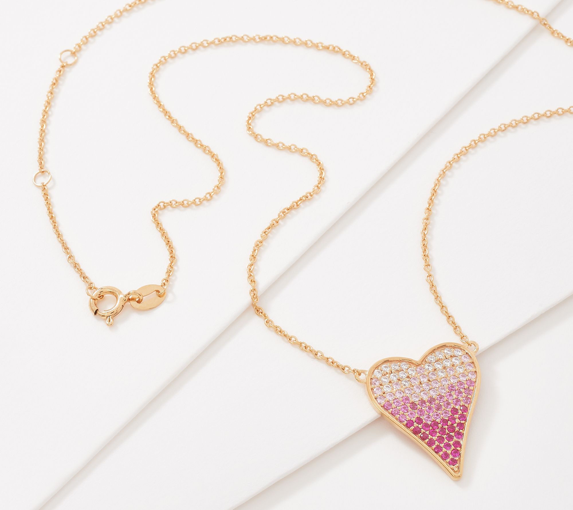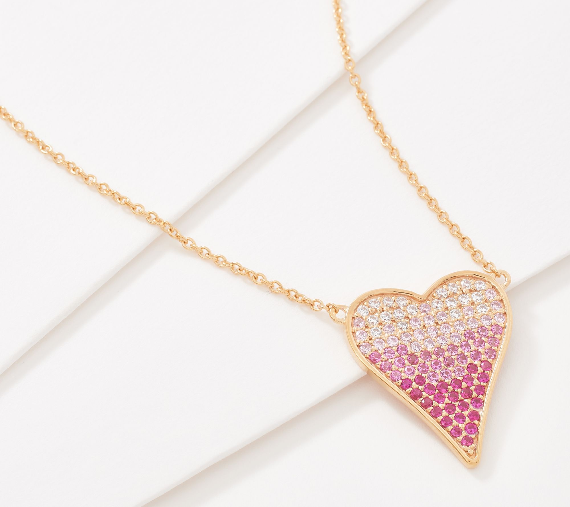 • Cable link chain; fixed heart pendant with pink ombre, round, pave-set Diamonique simulated diamonds