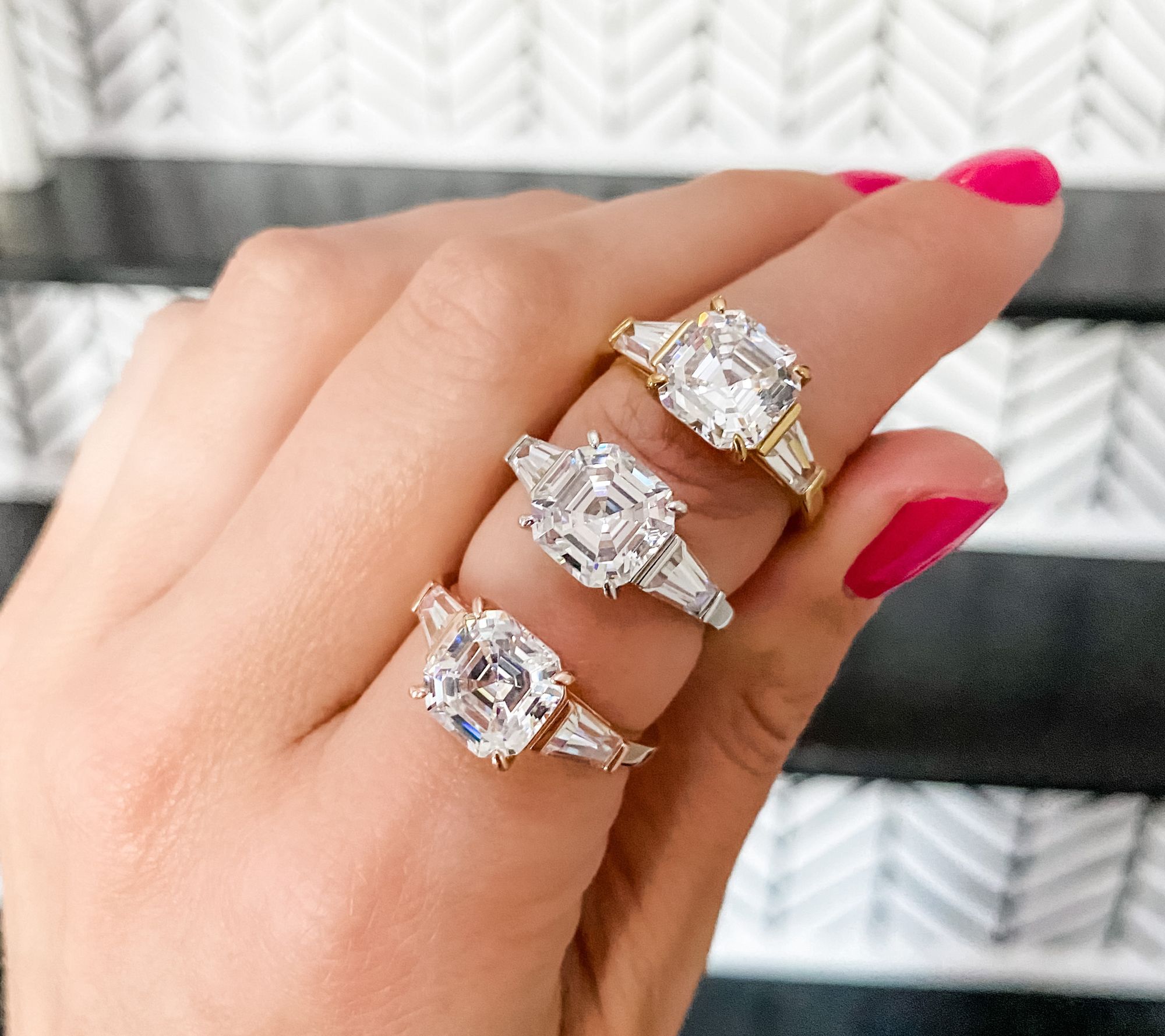 Asscher- and baguette-cut Diamonique simulated diamonds