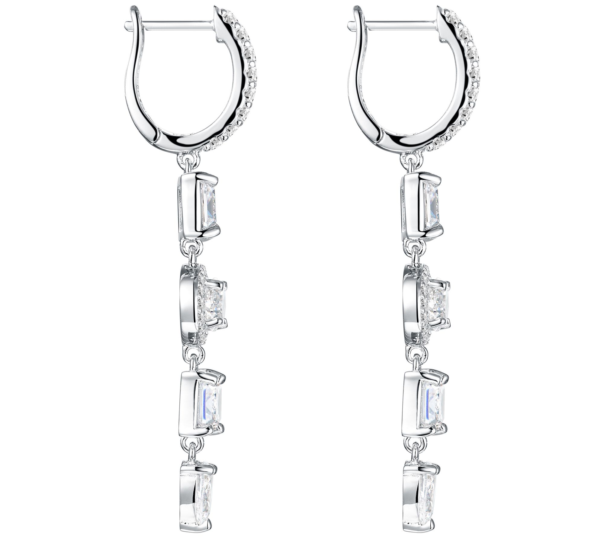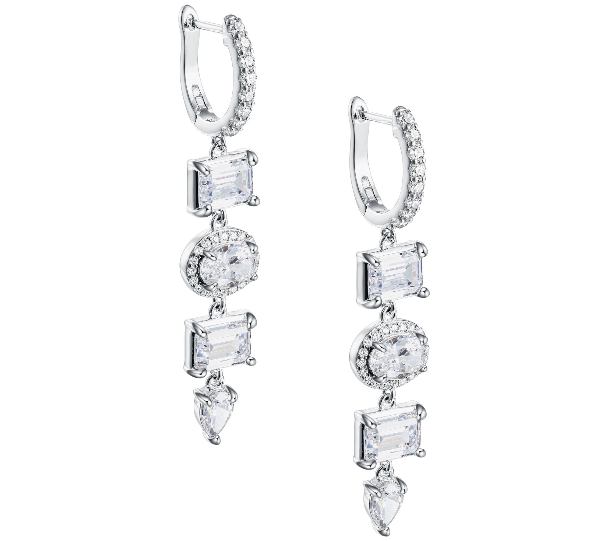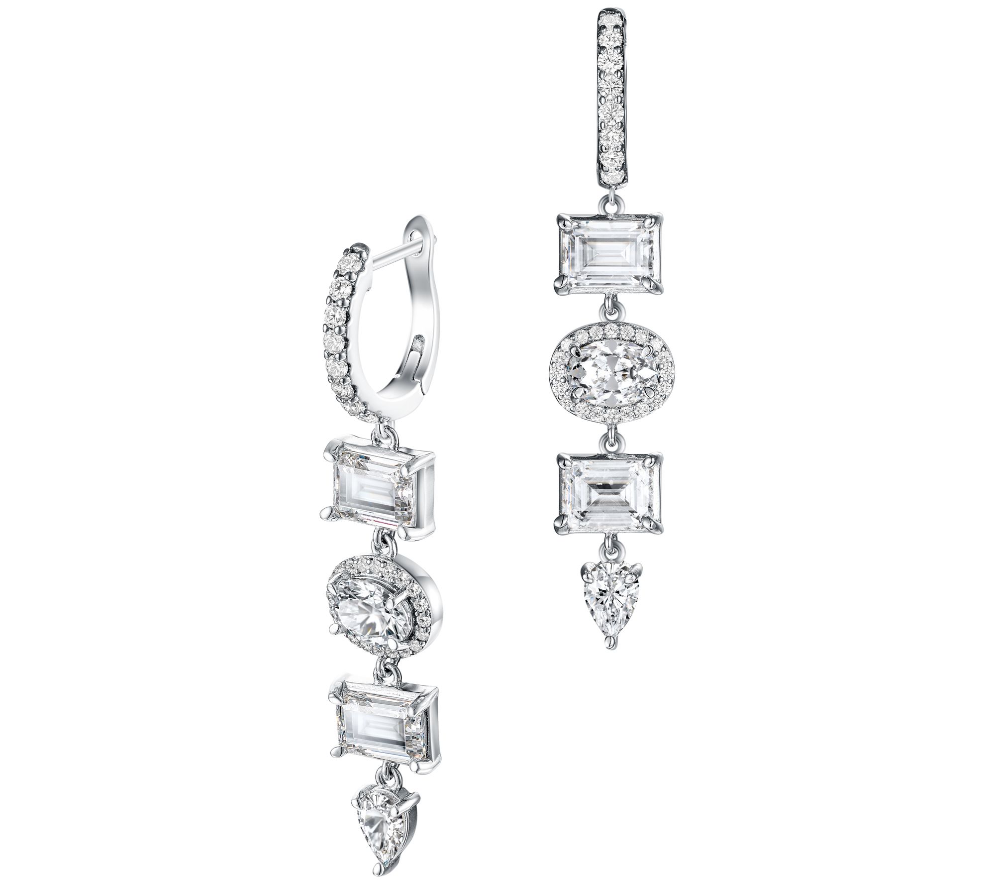 Elevate your evening look with these chandelier earrings featuring a dazzling array of simulated diamonds in emerald, oval, pear, and round cuts. These sterling silver earrings are rhodium-plated for added brilliance and come with snap bar closures to ensure they stay securely in place.