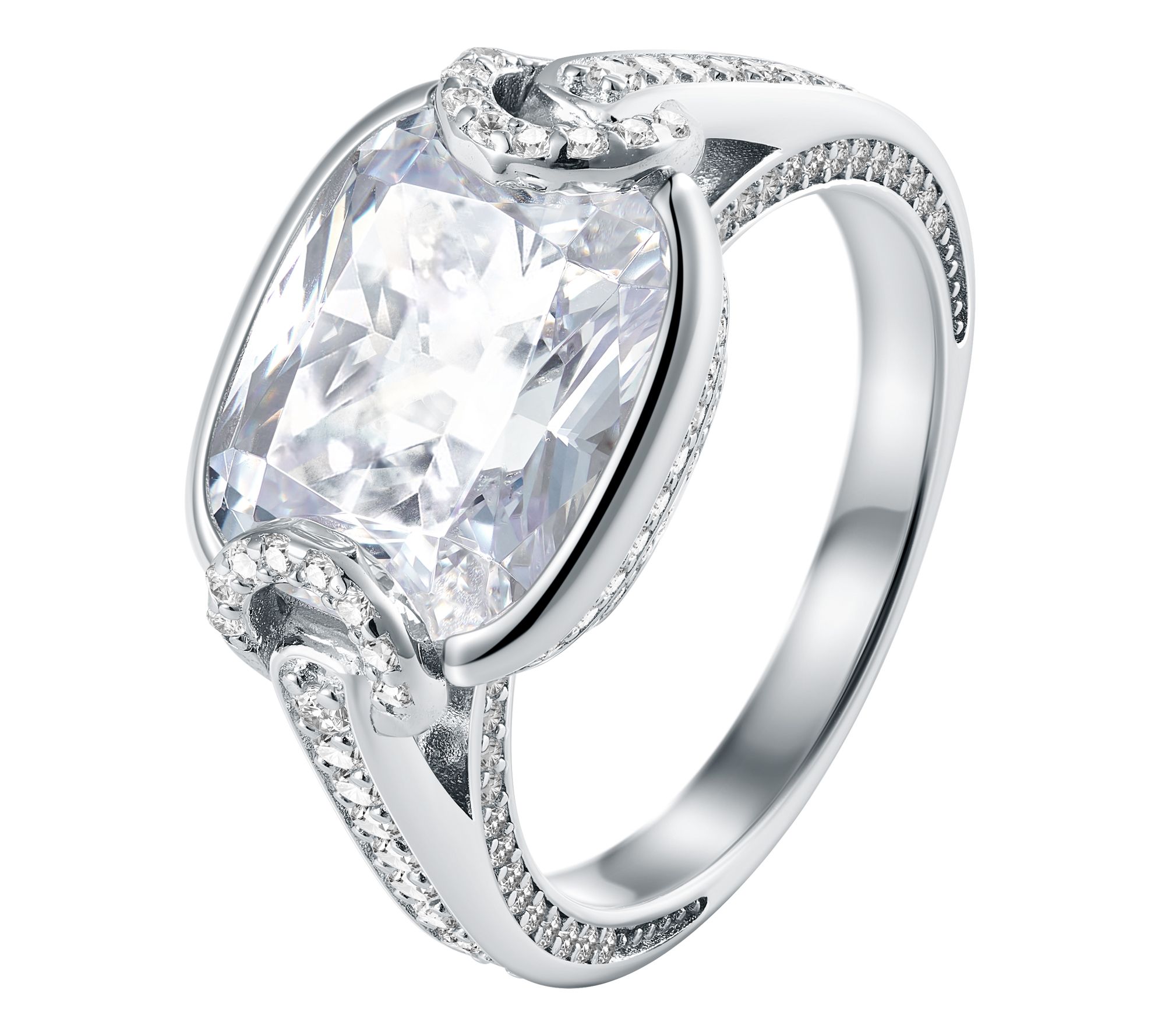 Shine brightly with a Jennifer Miller-inspired Diamonique® simulated diamond ring. This keepsake dazzles with a center cushion-cut Diamonique simulated diamond framed by pave-set, round Diamonique stones, offering a luxurious look without the hefty price.