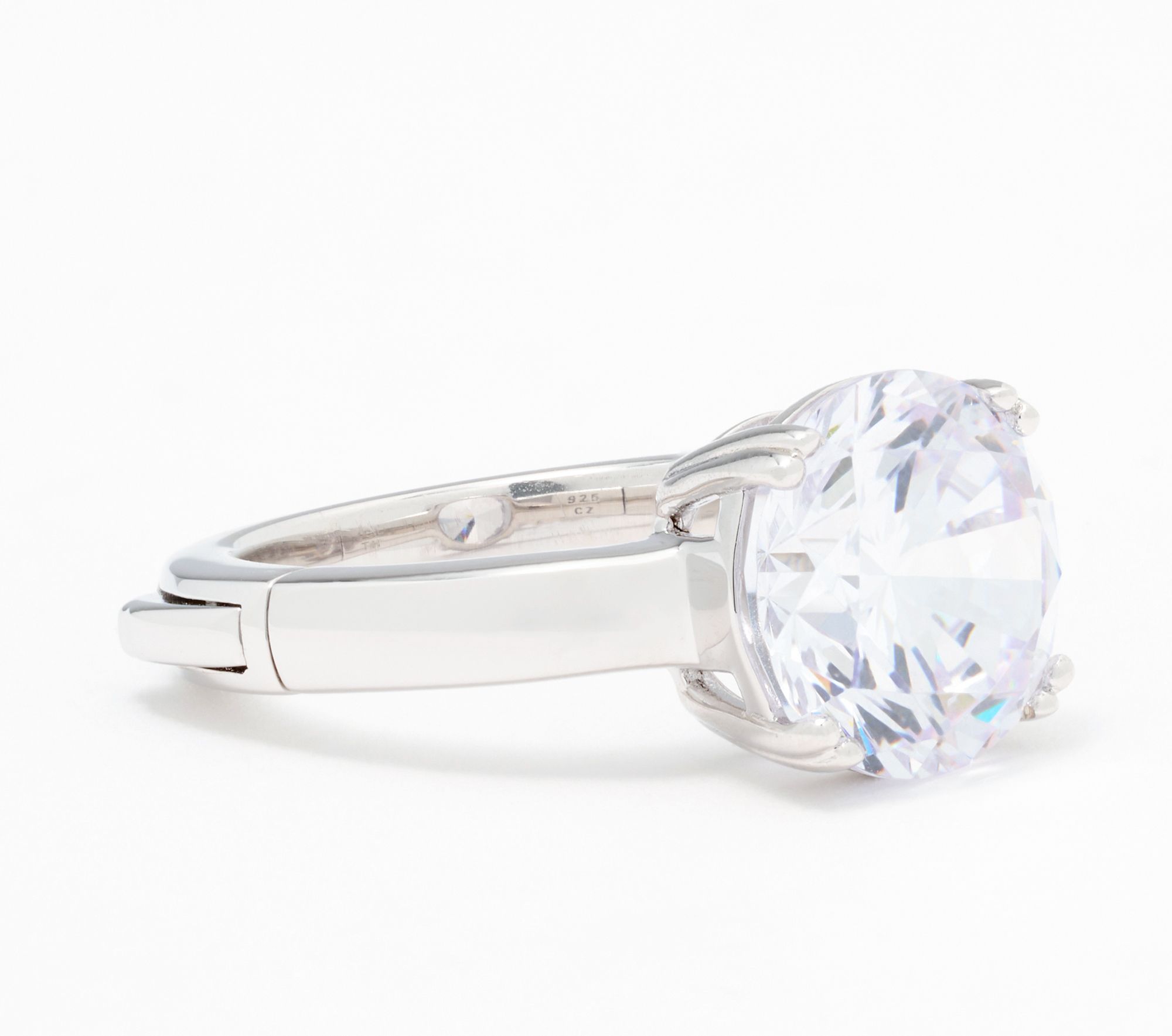 A dazzling update for your jewelry collection, this sterling silver ring showcases a prong-set Diamonique simulated diamond in your favorite classic shape -- round, oval, marquise, or pear. The push-lock closure makes slipping the ring on and off effortless, offering both sparkle and convenience for everyday wear or special moments.