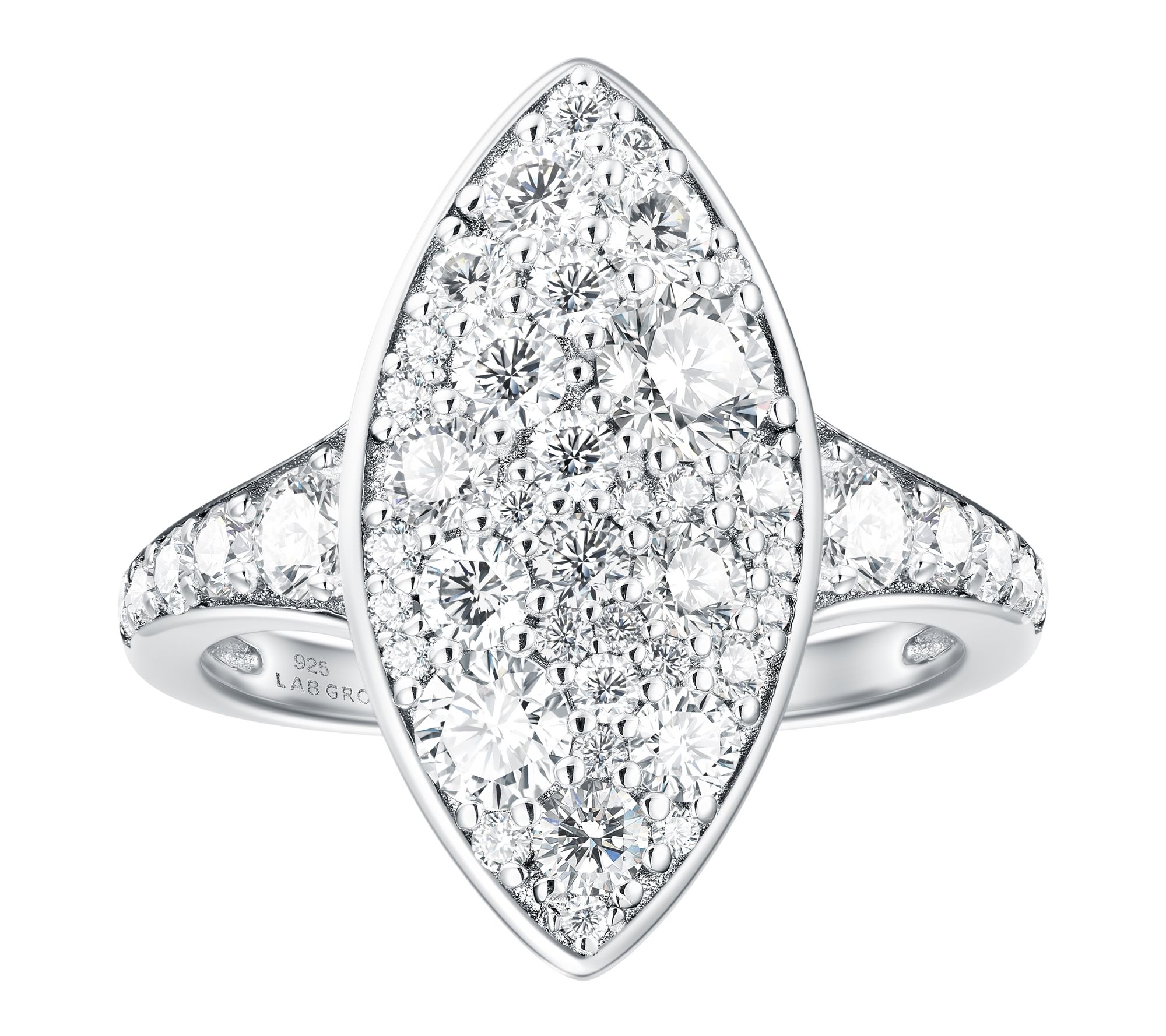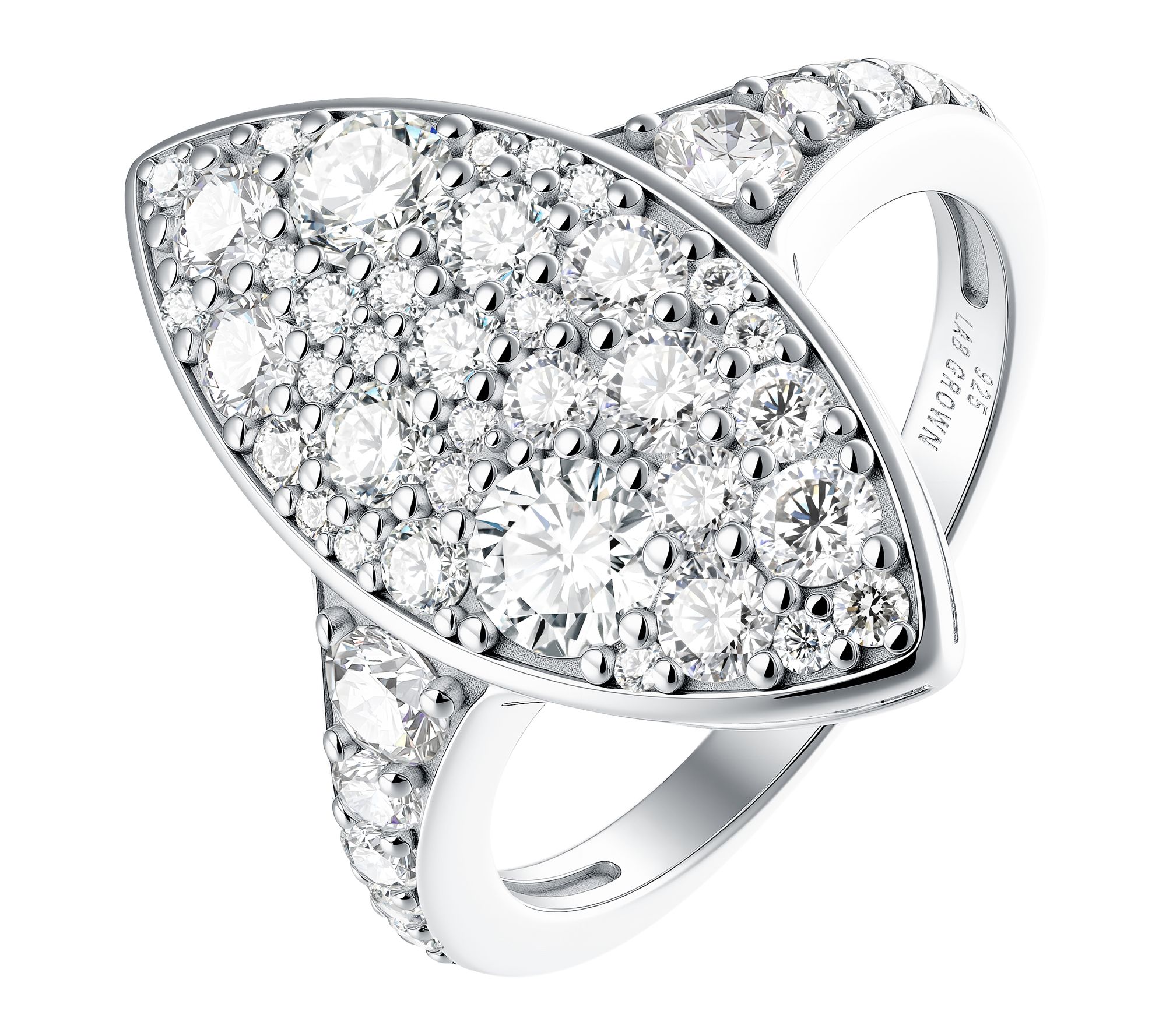 Pave-set, round-cut Diamonique simulated diamond cobble stone marquise-shaped ring; round Diamonique simulated diamonds on shank