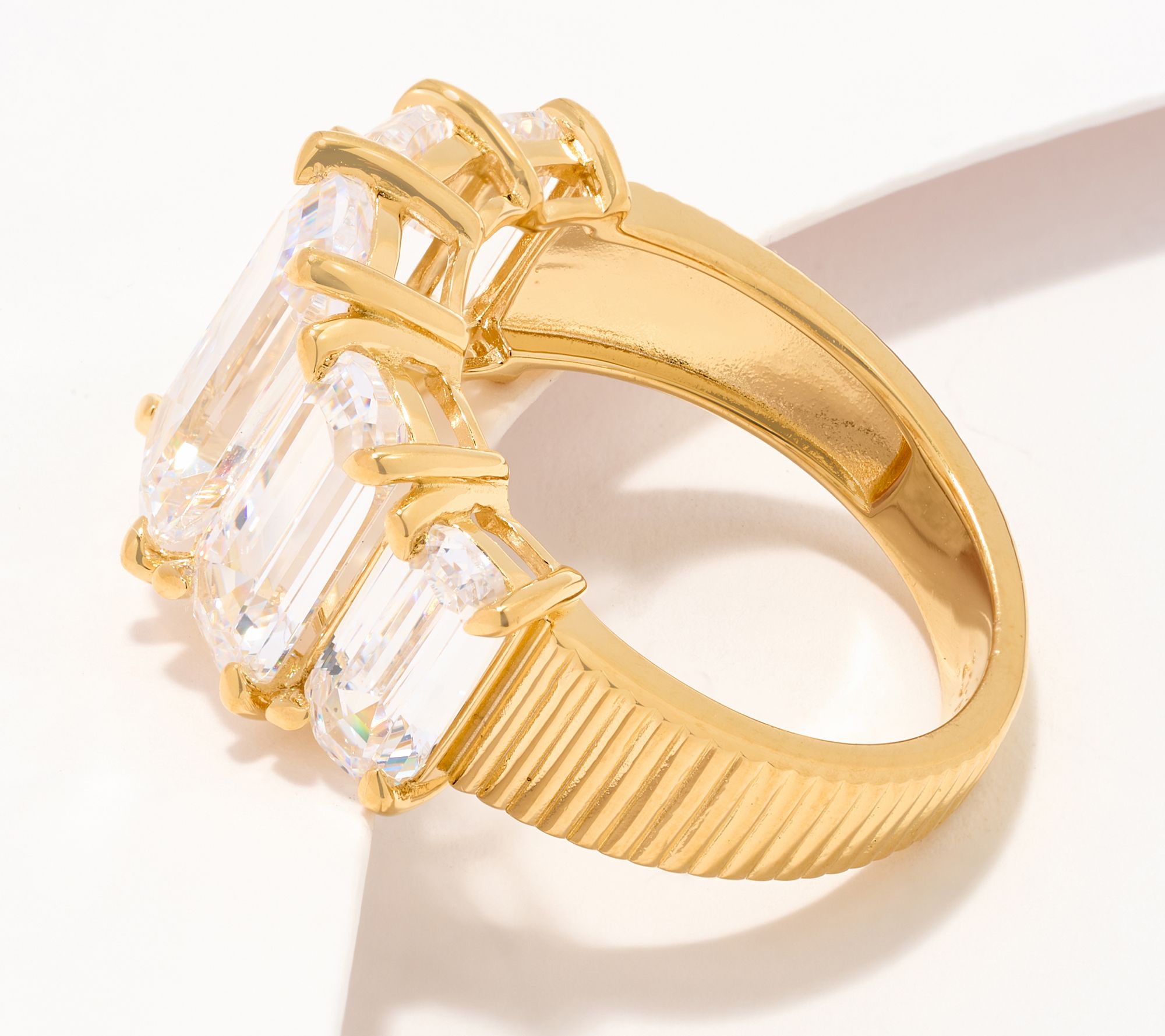 A mesmerizing mixture of radiance and romance, this brilliant band ring boasts five elongated cushion-cut cubic zirconia Diamonique simulated diamonds.