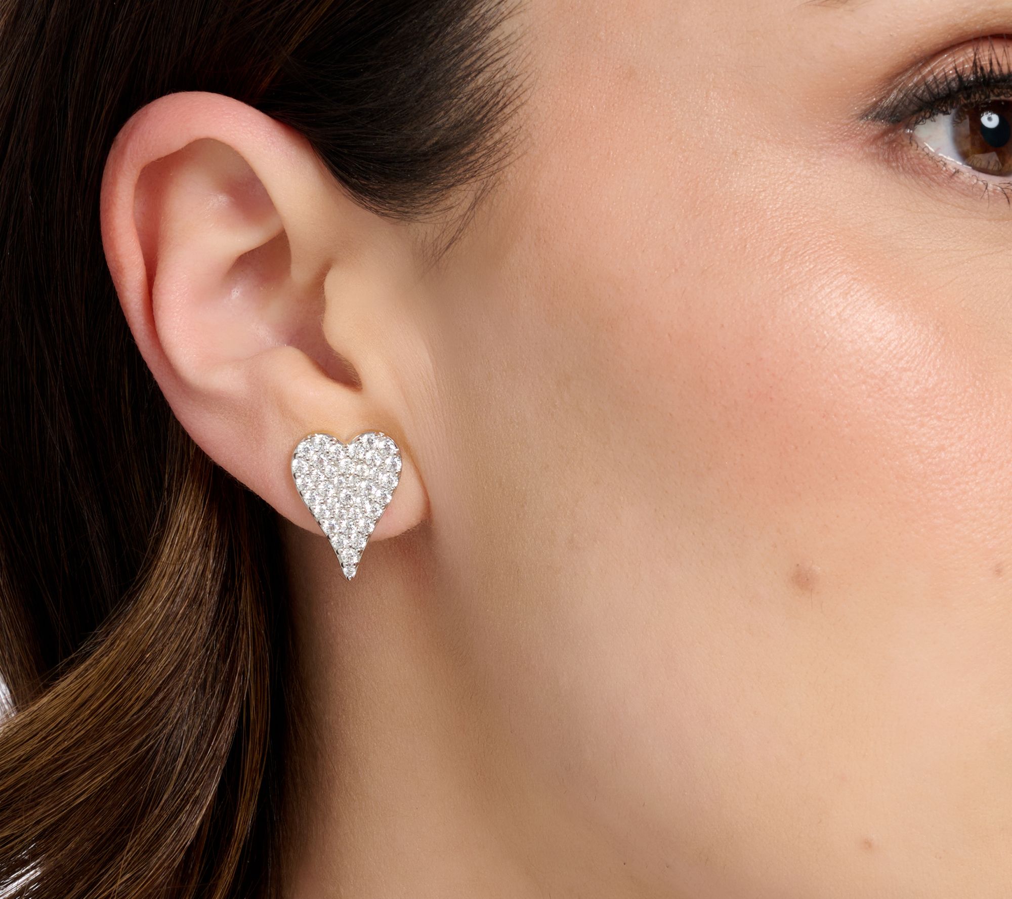 Add a subtle (and sentimental) spot of sparkle to any outfit with these elongated pave heart stud earrings.