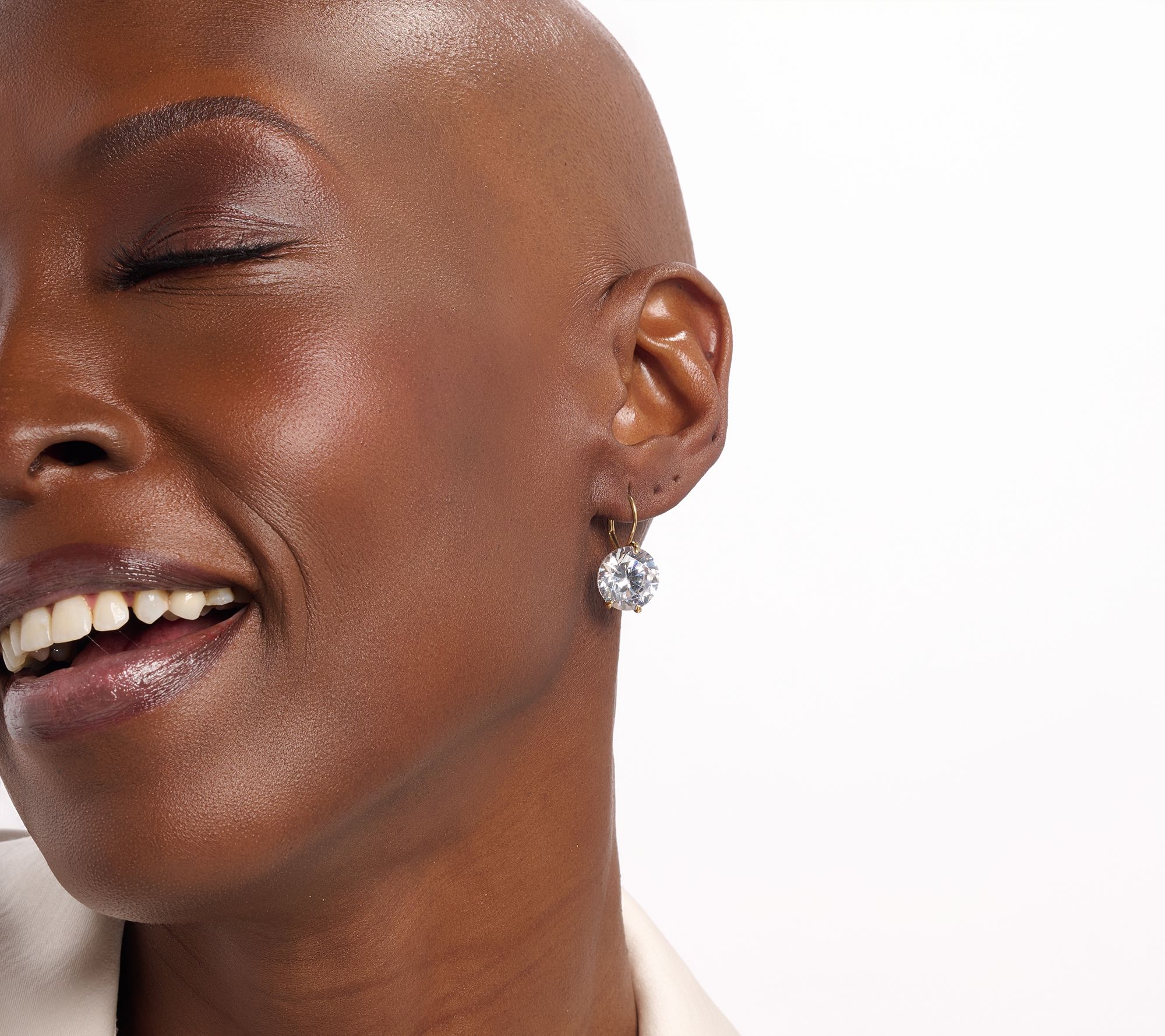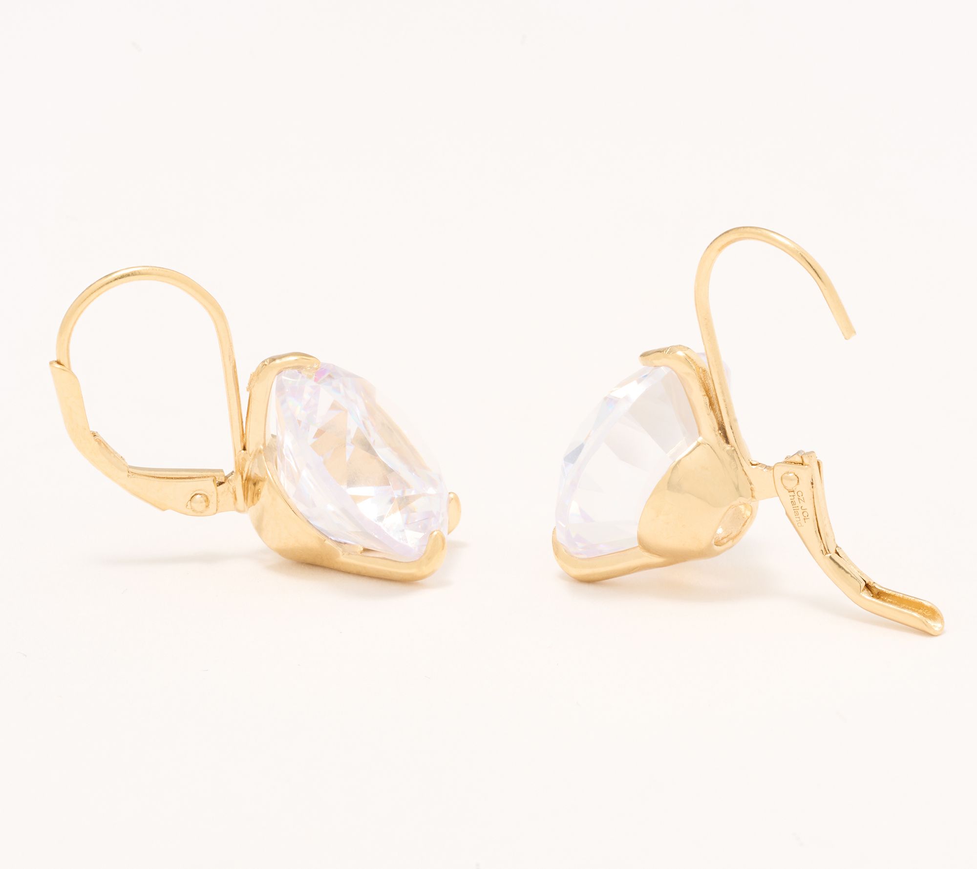 Oversized, faceted, round Diamonique simulated diamonds; three-prong martini setting; polished finish; drop design