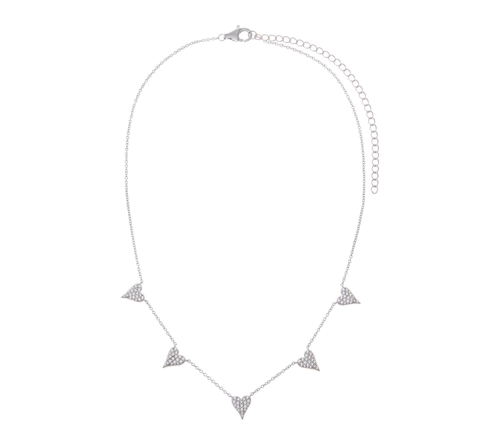 With heart-shaped stations sparkling along your neckline, this necklace brings a touch of romance to every outfit. Whether paired with a casual blouse for brunch or a dress for an evening out, the shimmer of Diamonique simulated diamonds catches the light beautifully. The adjustable length offers styling versatility for any occasion.