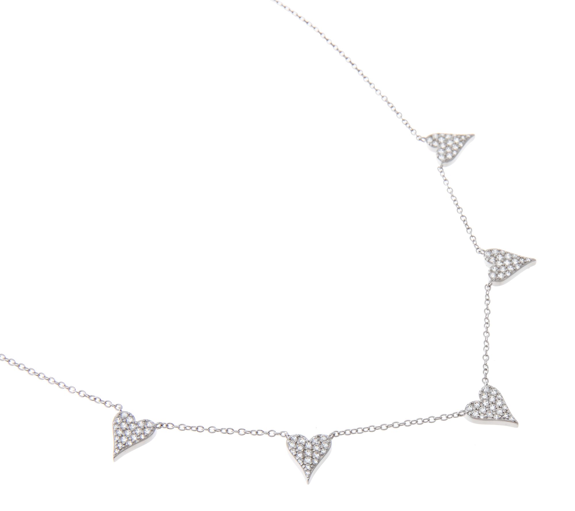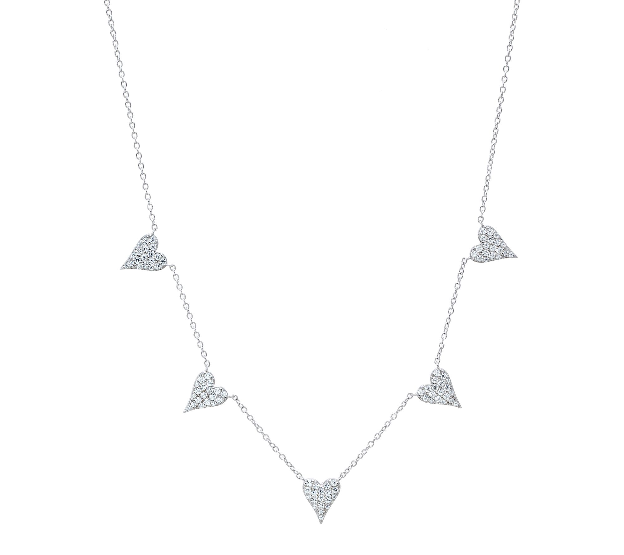 Five heart-shaped, prong-set stations; round Diamonique simulated diamonds; station design