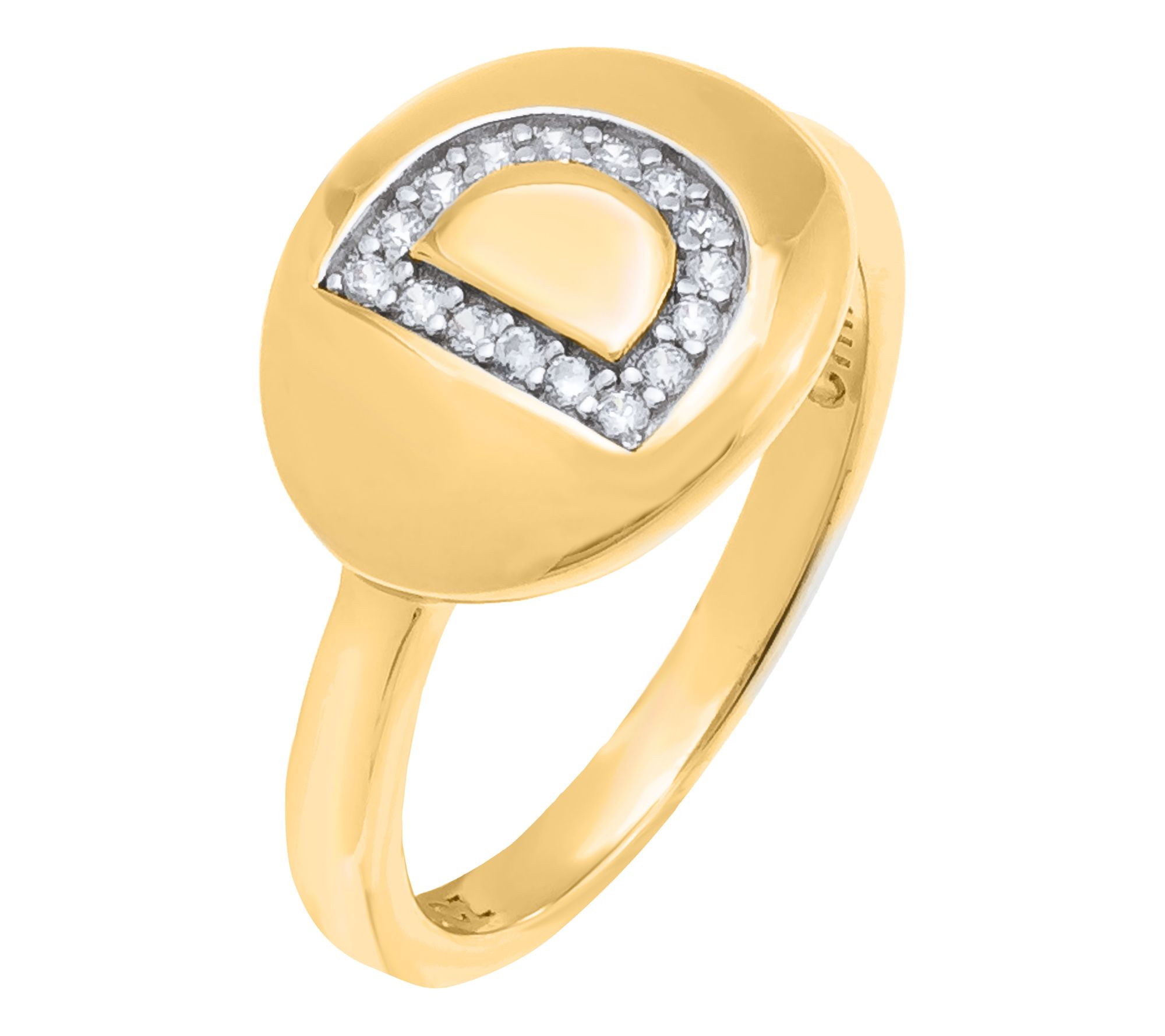 Oval-shaped intial signet design with prong-set, round Diamonique simulated diamonds