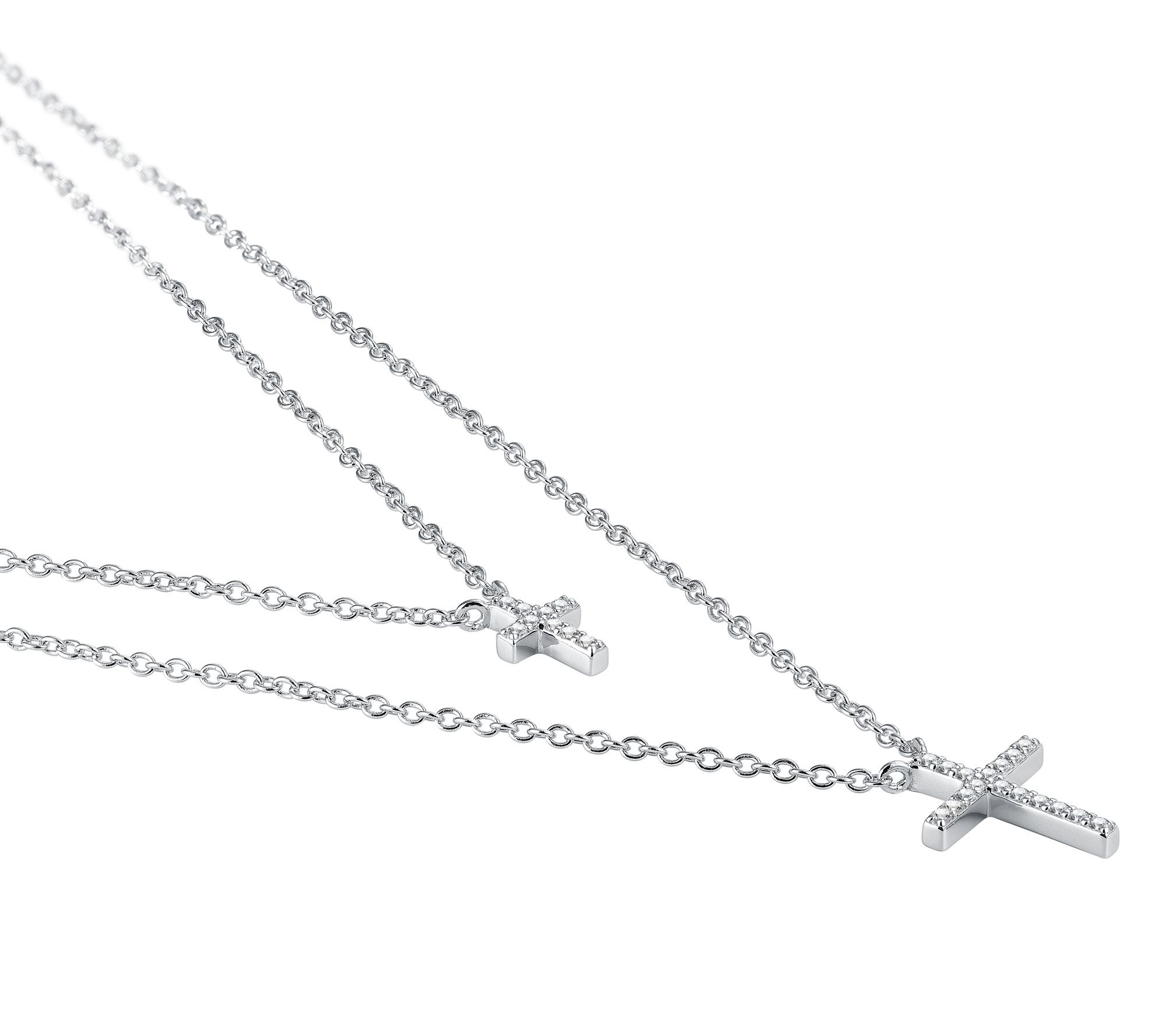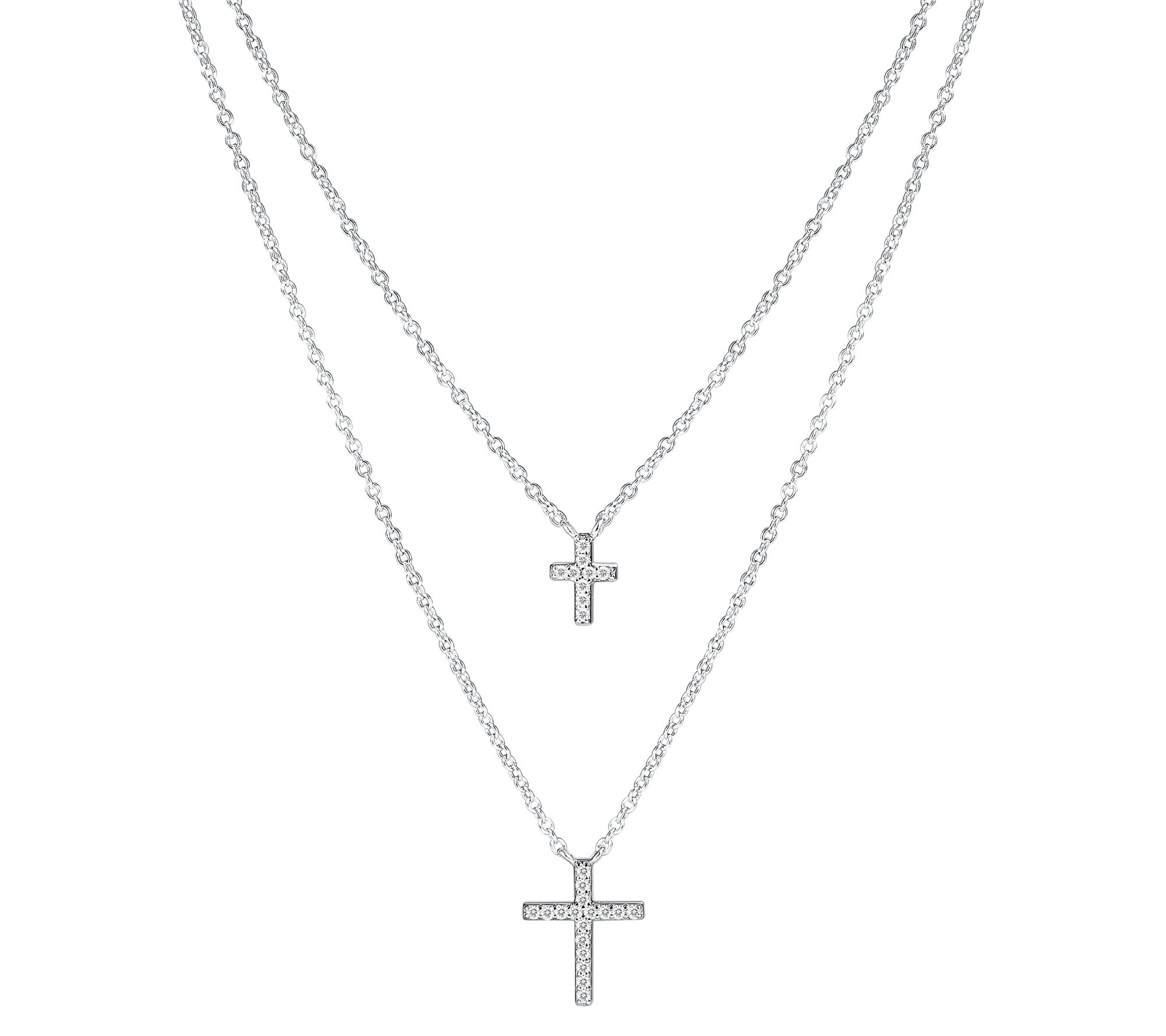 Love to layer? This sterling silver necklace displays two pre-layered chains and sparkling cross designs.