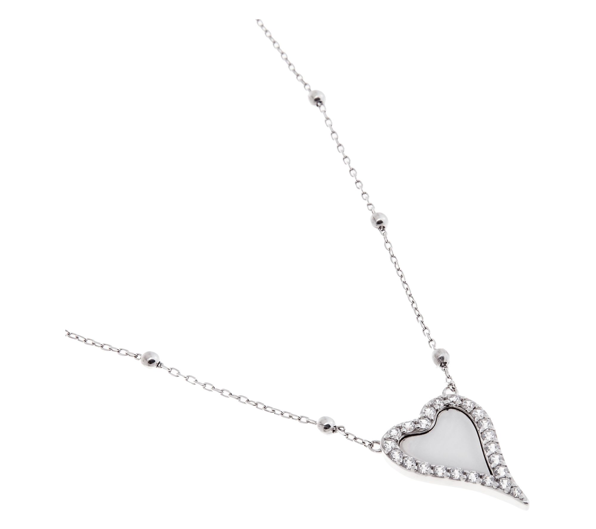 A lovely luxe look for any outfit or occasion, this Diamonique x Jennifer Miller pave heart necklace adds a touch of sparkle to your neckline. The beaded chain features a heart design adorned with round-cut, halo-set cubic zirconia Diamonique simulated diamonds.