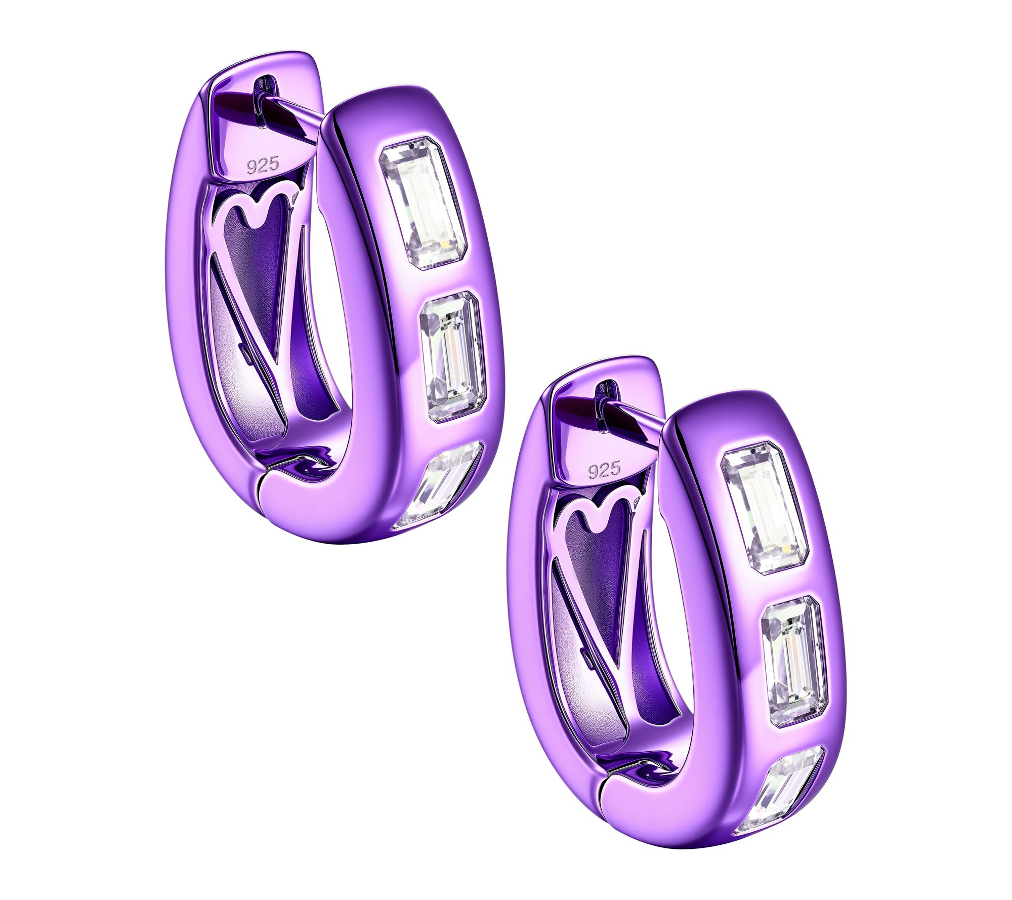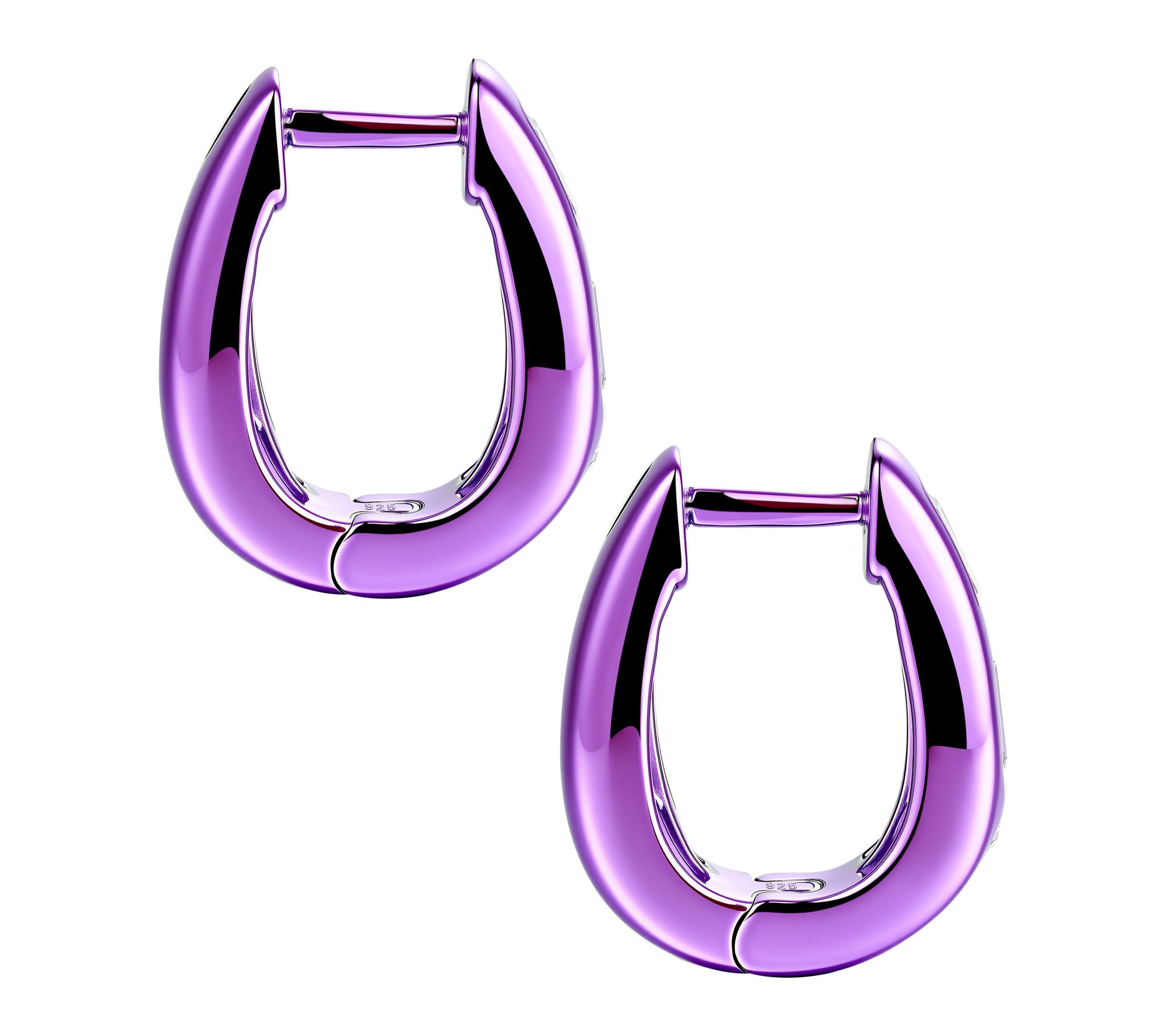 Accent any outfit with the modern sparkle of these hoop earrings, a collab between iconic designer Jennifer Miller and Diamonique simulated diamonds. The bold purple finish infuses your look with a playful pop of color -- ideal for everything from brunch with friends to a night out.